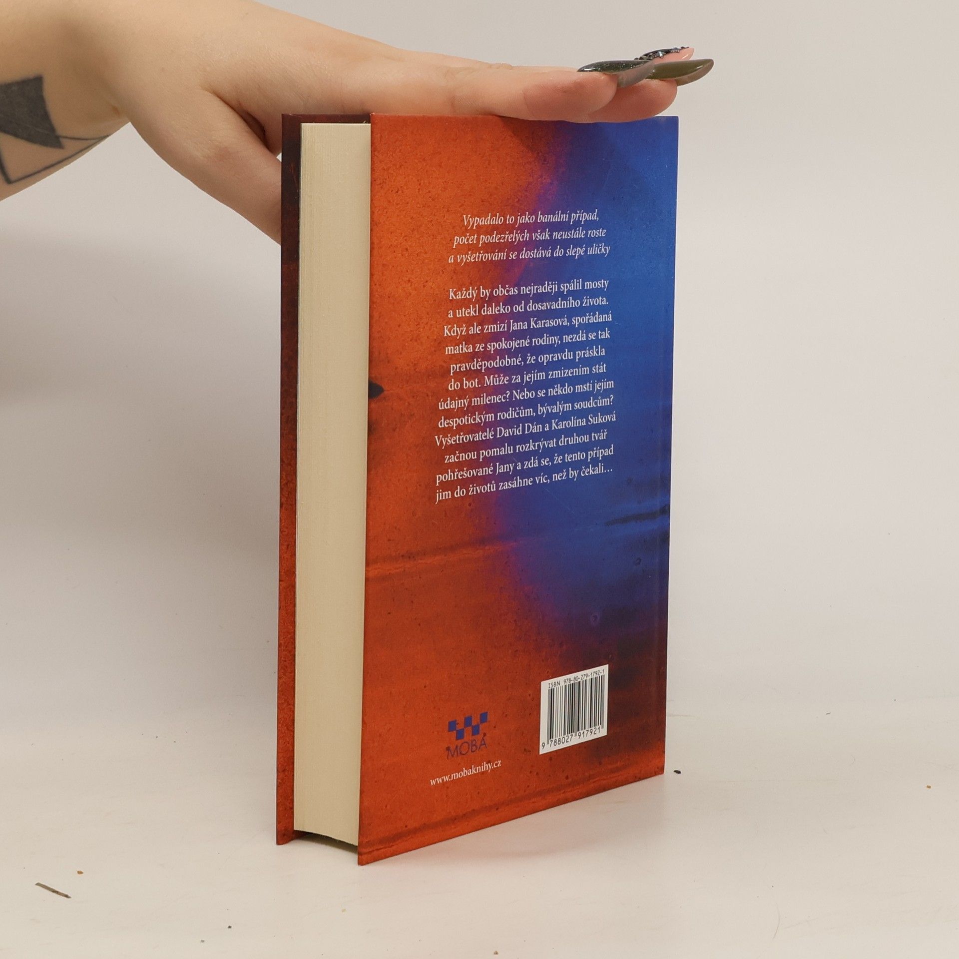 Vypadalo to jako banální případ, počet podezřelých však neustále roste a vyšetřování se dostává do slepé uličky Každý by občas nejraději spálil mosty a utekl daleko od dosavadního života. Když ale zmizí Jana Karasová, spořádaná matka ze spokojené rodiny, nezdá se tak pravděpodobné, že opravdu práskla do bot. Může za jejím zmizením stát údajný milenec? Nebo se někdo mstí jejím despotickým rodičům, bývalým soudcům? Vyšetřovatelé David Dán a Karolína Suková začnou pomalu rozkrývat druhou tvář pohřešované Jany a zdá se, že její zmizení jim do životů zasáhne víc, než by čekali…