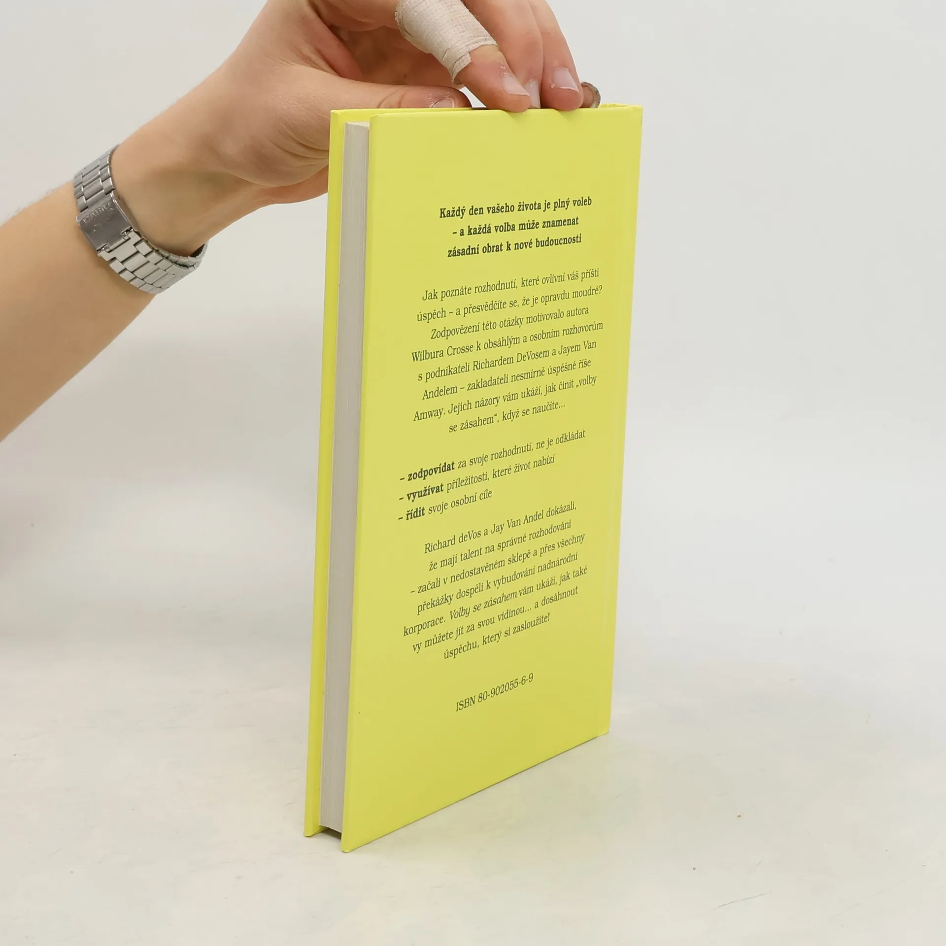 Autor ukazuje názory zakladatelů říše Amway, jak činit každodenní správné volby k docílení vašeho úspěchu, přeměnit nerozhodnost na inspiraci. Amway je americká firma založená v roce 1959 Jayem Van Andelem a Richem De Vosem. Firma prodává především drogerii (vlastní výroby), kosmetické přípravky Artistry a E.F.N.Y., potravní doplňky Nutrilite. K distribuci zboží používá multi-level marketing (MLM) nebo také interaktivní distribuci zboží a služeb. Tímto způsobem se dodává cca 40 000 druhů zboží v síti Amway, kterou tvoří přibližně 3 600 000 NVP (nezávislých vlastníků podnikání) přibližně v 80 zemích světa. Zakladatelé Amway Richem DeVosem a Jayem Van Andelem začínali svou kariéru jako distributoři firmy Nutrilite, kterou v roce 1934 založil Carl F. Rehnborg a dodnes vyrábí doplňky stravy výhradně přírodního charakteru a z vlastních ekologických zdrojů.