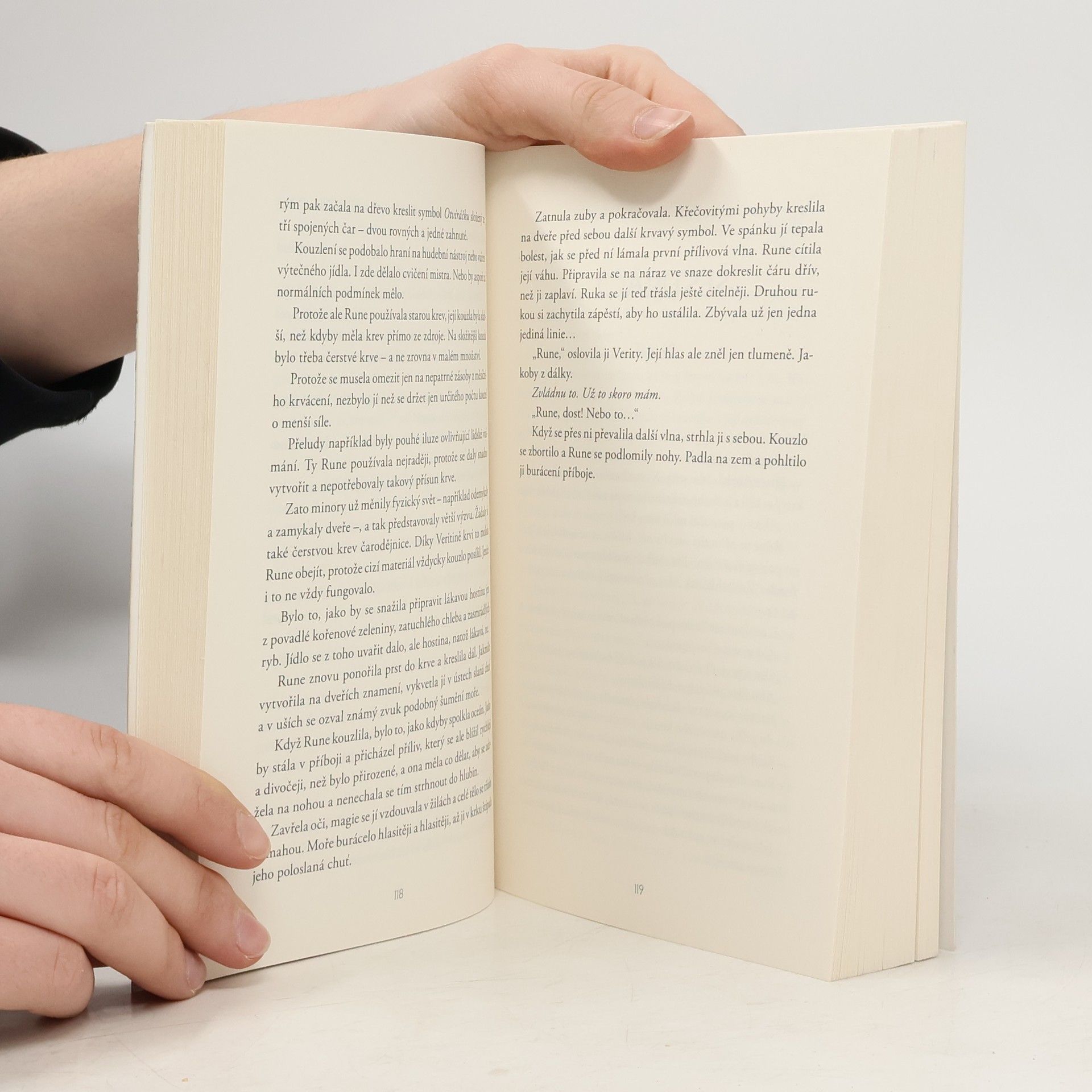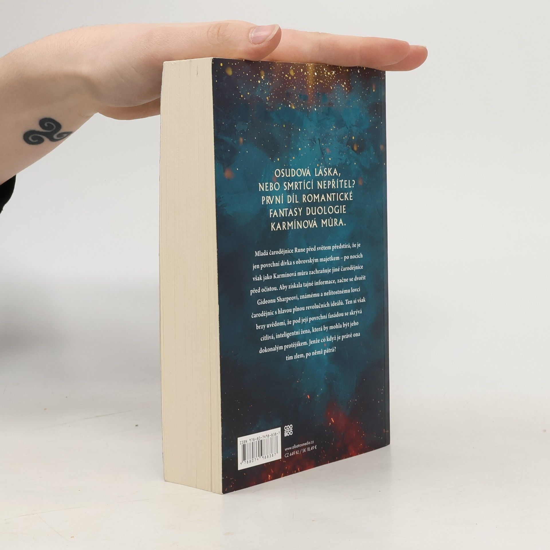 Osudová láska, nebo smrtící nepřítel? První díl romantické fantasy duologie. Mladá čarodějnice Rune před světem předstírá, že je jen povrchní dívka s obrovským majetkem – po nocích však jako Karmínová můra zachraňuje jiné čarodějnice před očistou. Aby získala tajné informace, začne se dvořit Gideonu Sharpeovi, známému a nelítostnému lovci čarodějnic s hlavou plnou revolučních ideálů. Ten si však brzy uvědomí, že pod její povrchní fasádou se skrývá citlivá, inteligentní žena, která by mohla být jeho dokonalým protějškem. Jenže co když je právě ona tím zlem, po němž pátrá?