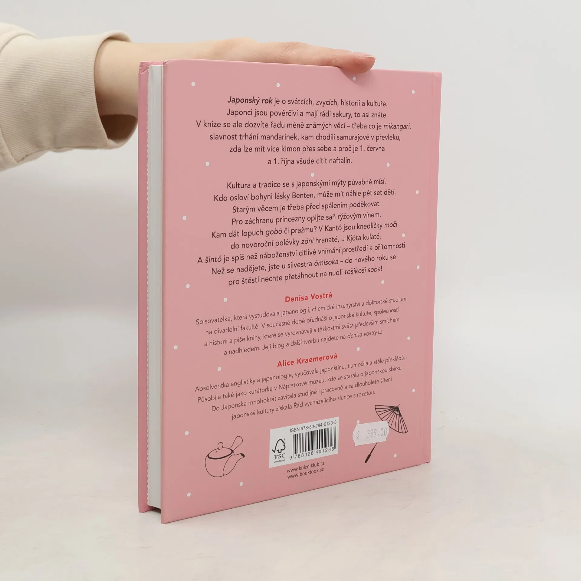 Japonský rok je o svátcích, zvycích, historii a kultuře. Japonci jsou pověrčiví a mají rádi sakury – to asi znáte. Ale co třeba mikangari, slavnost trhání mandarinek? Proč na ilustracích Příběhu prince Gendžiho chybí střechy? Kam chodili samurajové v převleku? Lze mít více kimon přes sebe? Proč je 1. června a 1. října všude cítit naftalín? Knihu otevřete kdekoli a začtete se. Kultura a tradice se s japonskými mýty a pověrami mísí půvabným způsobem. Kdo osloví bohyni lásky Benten, může mít náhle pět set dětí. Starým věcem je třeba před spálením poděkovat. Pro záchranu princezny opijte saň rýžovým vínem. Do čeho dát lopuch gobó a do čeho pražmu? Tu je recept na čáhan. V Kantó jsou knedlíčky moči do novoroční polévky zóni hranaté, u Kjóta kulaté. Nejkulatější bílé dango se hodí při cukimi, pozorování měsíce v úplňku. A šintó je spíš než náboženství citlivé vnímání prostředí a přítomnosti. Než se nadějete, jste s knihou u silvestra ómisoka – do nového roku se pro štěstí nechte přetáhnout na nudli tošikoši soba!
