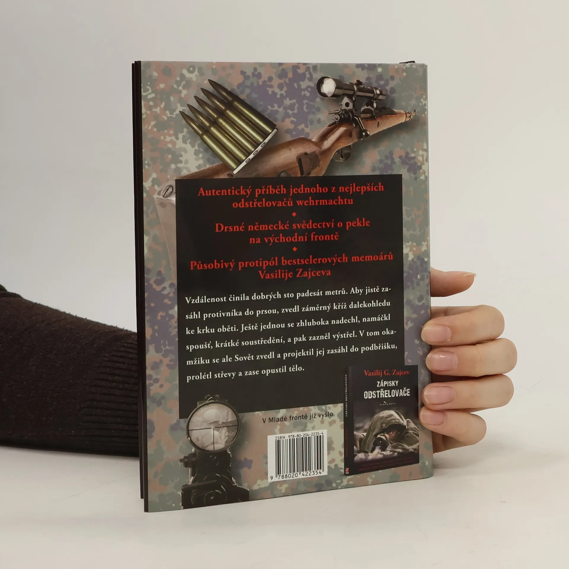 Po mimořádném úspěchu českého vydání vzpomínek sovětského odstřelovačského esa Vasilije Zajceva přichází kniha, která nabízí podobně strhující pohled na boje na východní frontě, avšak tentokrát z perspektivy jednoho z nejlepších odstřelovačů německé armády, Josefa „Seppa“ Allerbergera (1924–2010). Tento rodák ze Štýrska se v roce 1942 dobrovolně přihlásil do wehrmachtu a nejprve byl vycvičen jako střelec z kulometu. Se snajperským řemeslem se začal seznamovat po svém zranění v létě 1943. Během následujících tvrdých ústupových bojů se záhy stal druhým nejúspěšnějším odstřelovačem německé armády a posléze jedním z mála řadových vojáků, kteří byli vyznamenáni Rytířským křížem Železného kříže. Pro české čtenáře je tato nesmlouvavě otevřená a místy drastická memoárová publikace, kterou zpracoval německý odborník na historii odstřelovačství Albrecht Wacker, pozoruhodná tím, že strastiplná bojová cesta Seppa Allebergera v závěru války krátce přivedla i na naše území.