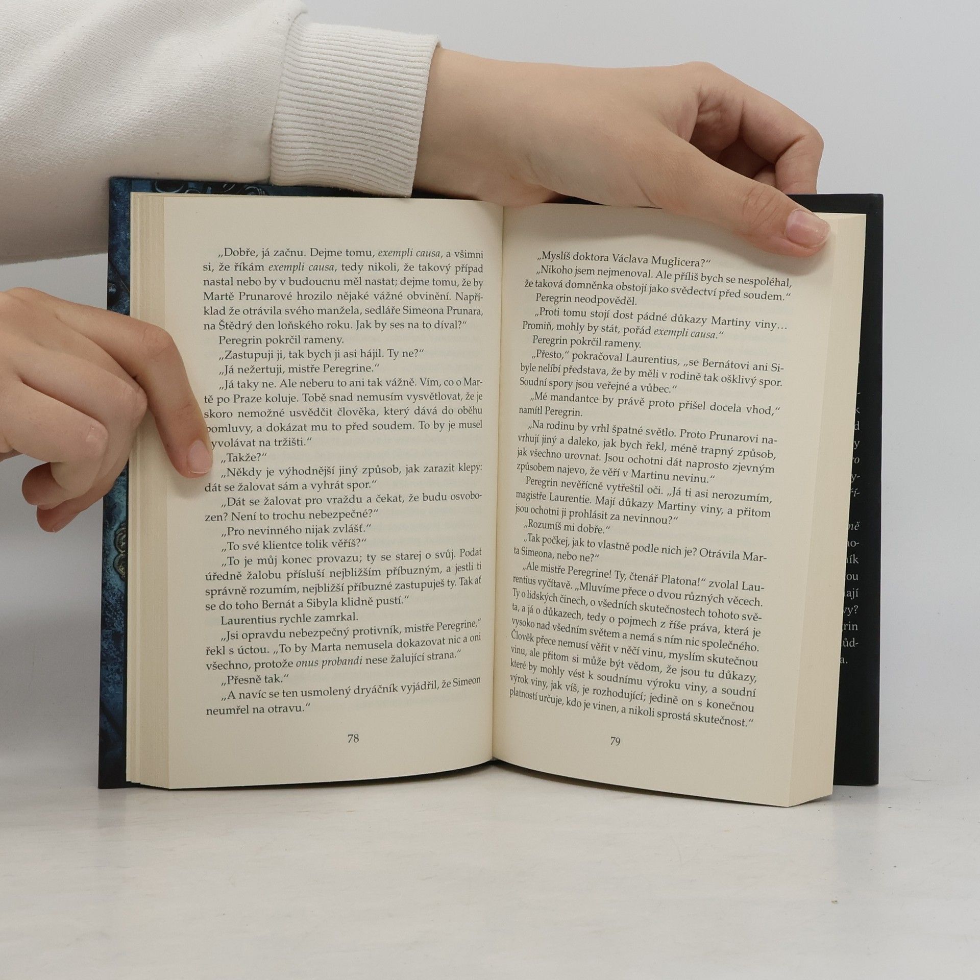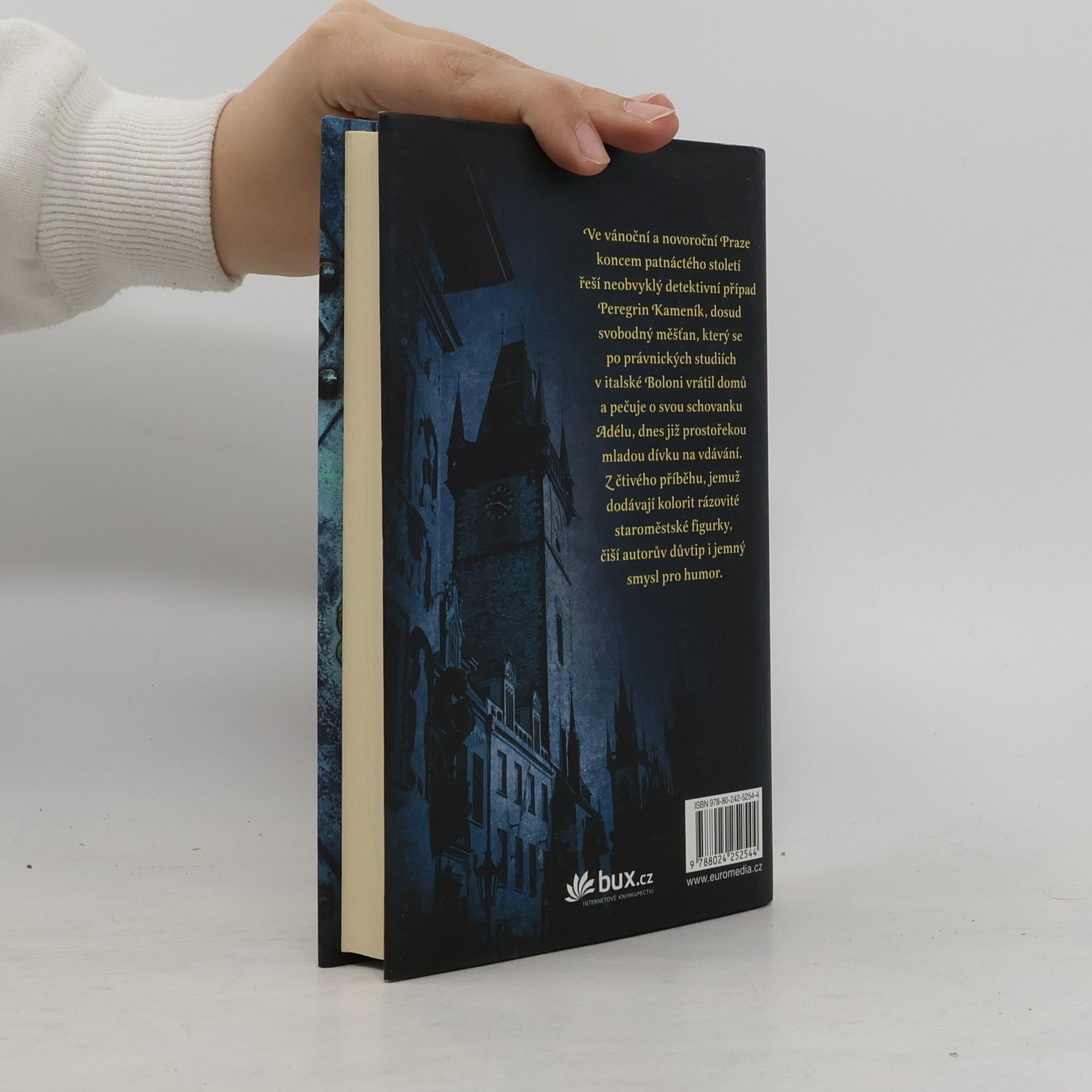 Detektivní příběh zasazený do středověké Prahy začíná na Štědrý den „roku 1490 a něco“ ve staroměstských lázních, kam si odpoledne zašel Peregrin Kameník, mistr obojího práva. Venku bylo nevlídno, sešlo se hodně návštěvníků a Peregrin si na káď s horkou vodou musel chvíli počkat. Tou dobou se tam právě řešil zvláštní problém: jednomu z hostů se ztratilo ošacení. V lázních byl tehdy i postarší sedlář Simeon Prunar a v noci po návratu domů za záhadných okolností zemřel. Vše nasvědčovalo otravě, ale mezi lidmi se brzy začalo šířit, že na vině je jeho o mnoho let mladší manželka Marta…