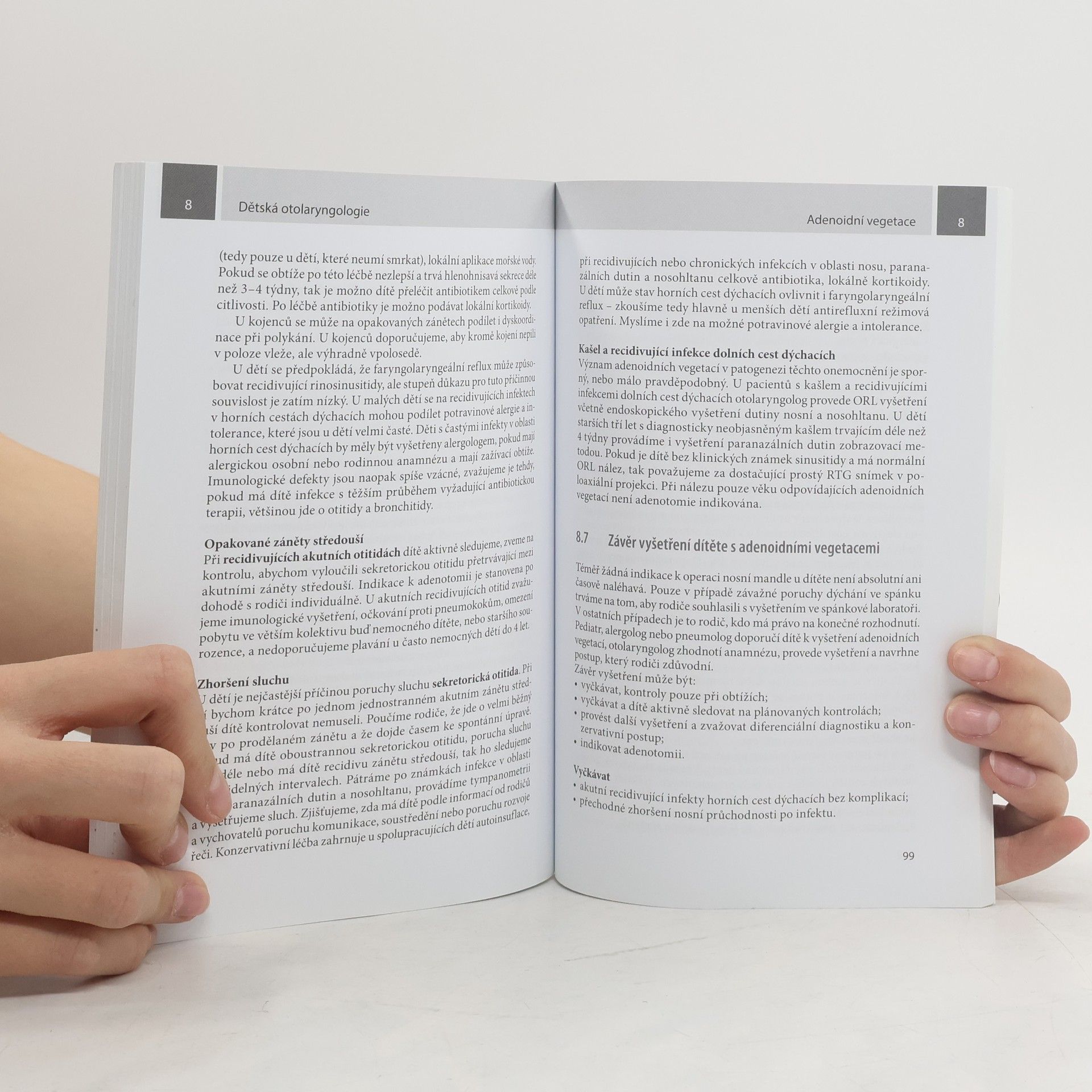Kolektiv autorů vybral ke zpracování nejběžnější situace, s nimiž se setkali v ambulantní péči o děti s onemocněním uší, nosu a krku, jako je zánět středouší, faryngitida, rinosinusitida, adenoidektomie, tonzilektomie, vyšetření sluchu a infekční onemocnění. Dvě kapitoly se týkají nových informací o poruchách dýchání ve spánku a extraezofageálním refluxu. Témata jsou zpracována na základě aktuálních poznatků a důkazů. Na rozdíl od systematických učebnic autorů z klinik vznikla tato kniha z praktické potřeby lékaře v ambulanci a snaží se odpovědět na konkrétní otázky (indikace k operaci, k vyšetření, kdy léčit antibiotiky, kdy dítě pouze sledovat apod.). Publikace, která na našem knižním odborném trhu dosud chybí, je určena ambulantním otolaryngologům s dětskými pacienty, ale bude též přínosná jako doplňková učebnice k přípravě na atestaci z ORL a zajímavá i pro praktické pediatry.