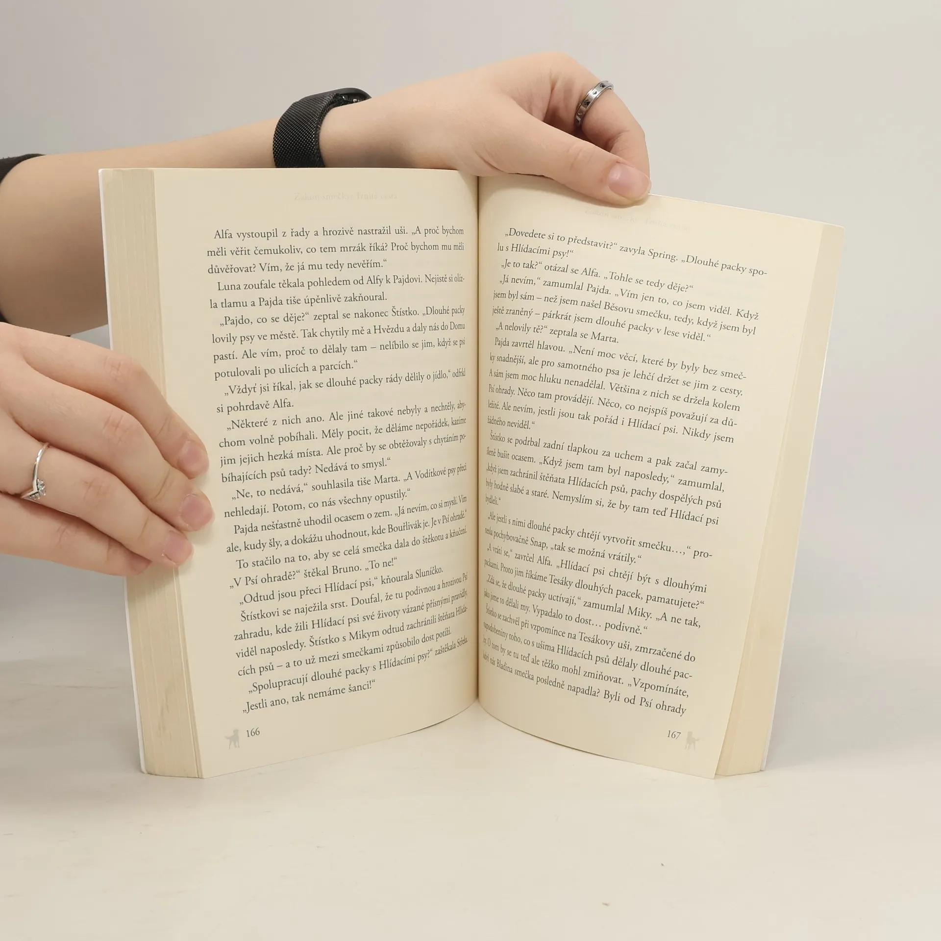 Čtvrtý díl oblíbené fantasy série o psech. Hlavní hrdina Štístko a vůdce smečky Alfa nyní žijí v křehkém příměří, ale napětí mezi nimi vzrůstá. Nově vzniklá smečka spojená z divokých a vodítkových psů musí založit tábor, který bude dostatečně vzdálený od krvelačných hlídacích psů. Když po dlouhém putování smečka konečně nalezne vhodné místo, čeká ji nepříjemné překvapení. Na lovu se setká s další tlupou! Dokáže Alfa ochránit všechny podřízené psy, nebo se skupina rozdělí?