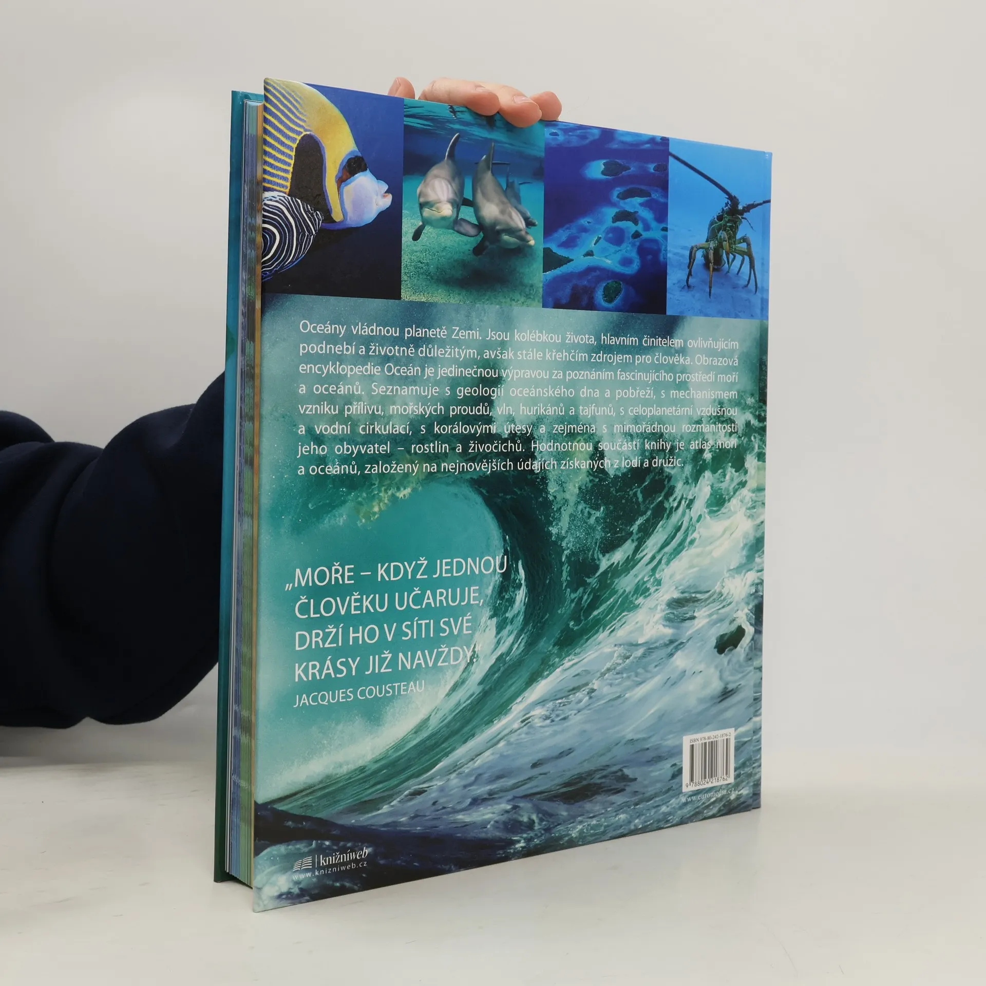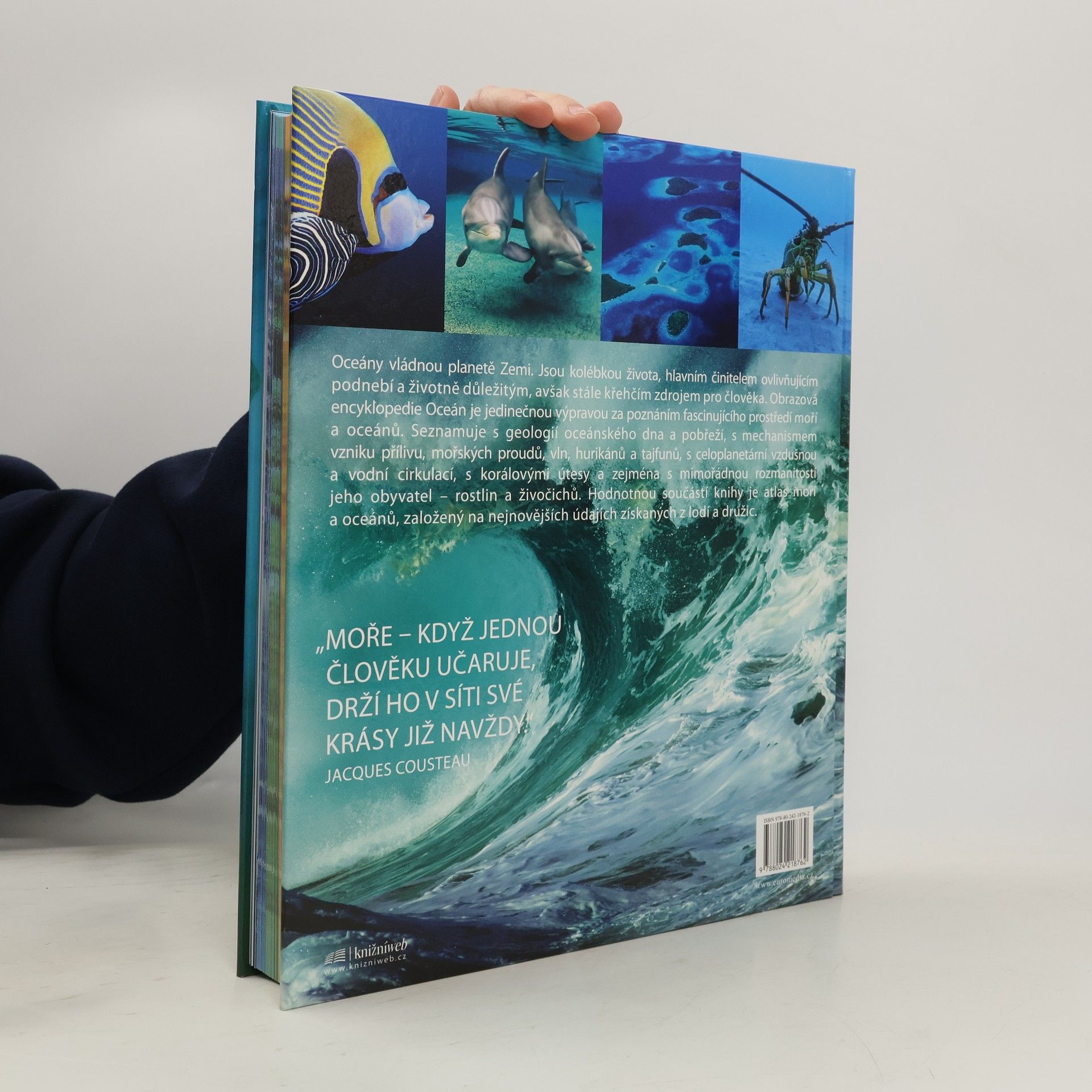 Oceány vládnou planetě Zemi. Jsou kolébkou života, hlavním činitelem ovlivňujícím podnebí a životně důležitým, avšak stále křehčím zdrojem pro člověka. Obrazová encyklopedie Oceán je jedinečnou výpravou za poznáním fascinujícího prostředí moří a oceánů. Seznamuje s geologií oceánského dna, s mechanismem vzniku přílivu, mořských proudů, vln, hurikánů a tajfunů, s celoplanetární vzdušnou a vodní cirkulací, s korálovými útesy a zejména s mimořádnou rozmanitostí jeho obyvatel -- hub, rostlin a živočichů. Hodnotou součástí knihy je atlas moří a oceánů, založený na nejnovějších údajích získaných z lodí a družic. "Moře - když jednou člověku učaruje, drží jej v síti své krásy již navždy." Jacques Cousteau