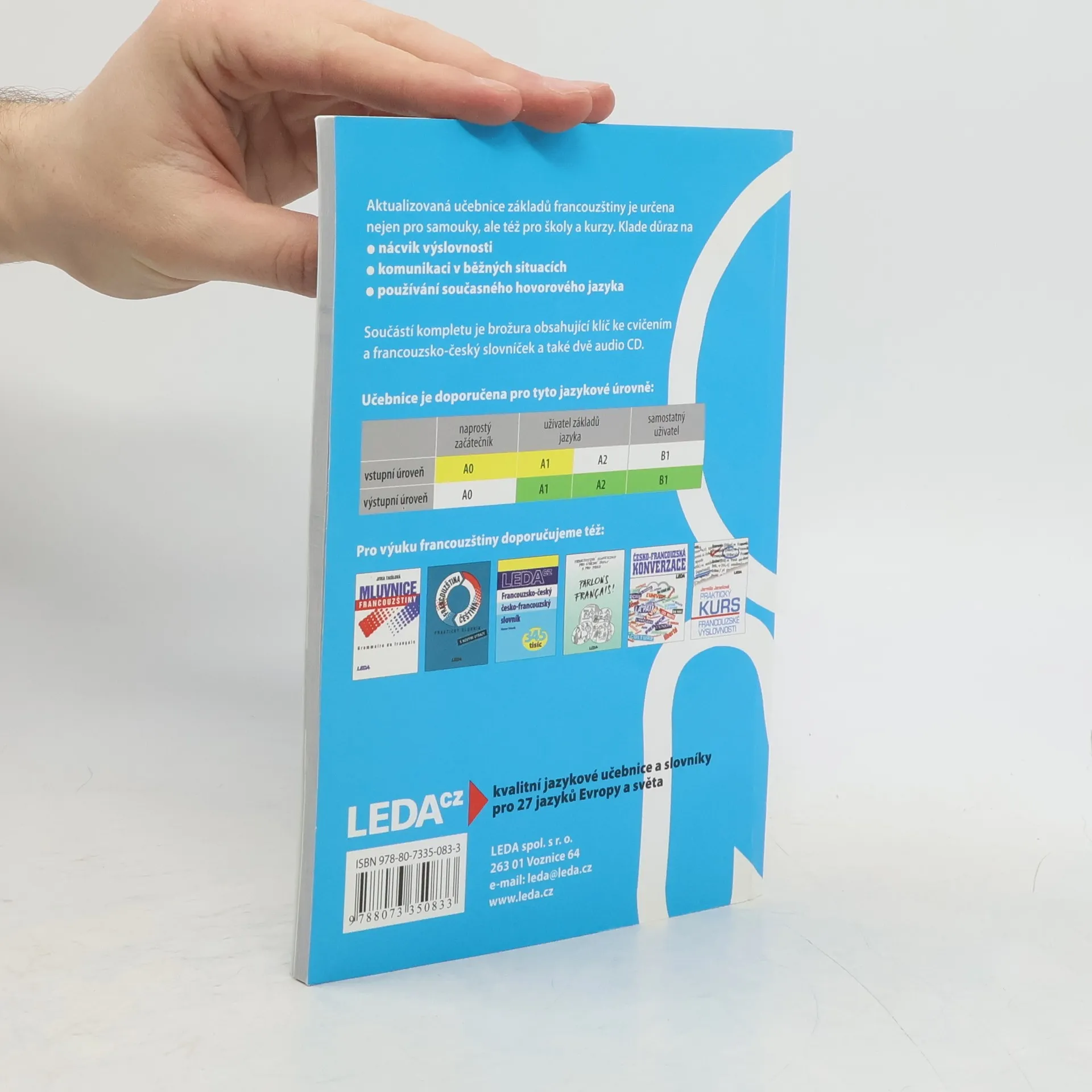 Aktualizovaná a doplněná verze oblíbené učebnice určené samoukům, účastníkům jazykových kurzů, studentům i „věčným“ začátečníkům, kteří si potřebují osvěžit své znalosti. Učebnice má 35 lekcí a každá obsahuje úvodní text, slovíčka, frazeologismy i francouzské reálie spjaté s každodenním životem. Následuje mluvnická část, na niž navazují cvičení. Výslovnost a pravopis jsou probírány v prvních 15 lekcích, každý fonetický jev je důkladně procvičen. Součástí učebnice je jednak brožura s klíčem ke cvičením a francouzsko-českým slovníčkem, jednak dvě audio CD, na nichž rodilí mluvčí nahráli úvodní texty, dialogy, všechna fonetická a vybraná mluvnická cvičení. Pokud uživatel poctivě prostuduje celou učebnici, měly by jeho jazykové znalosti odpovídat nejlepšímu maturitnímu průměru. 1. vydání.