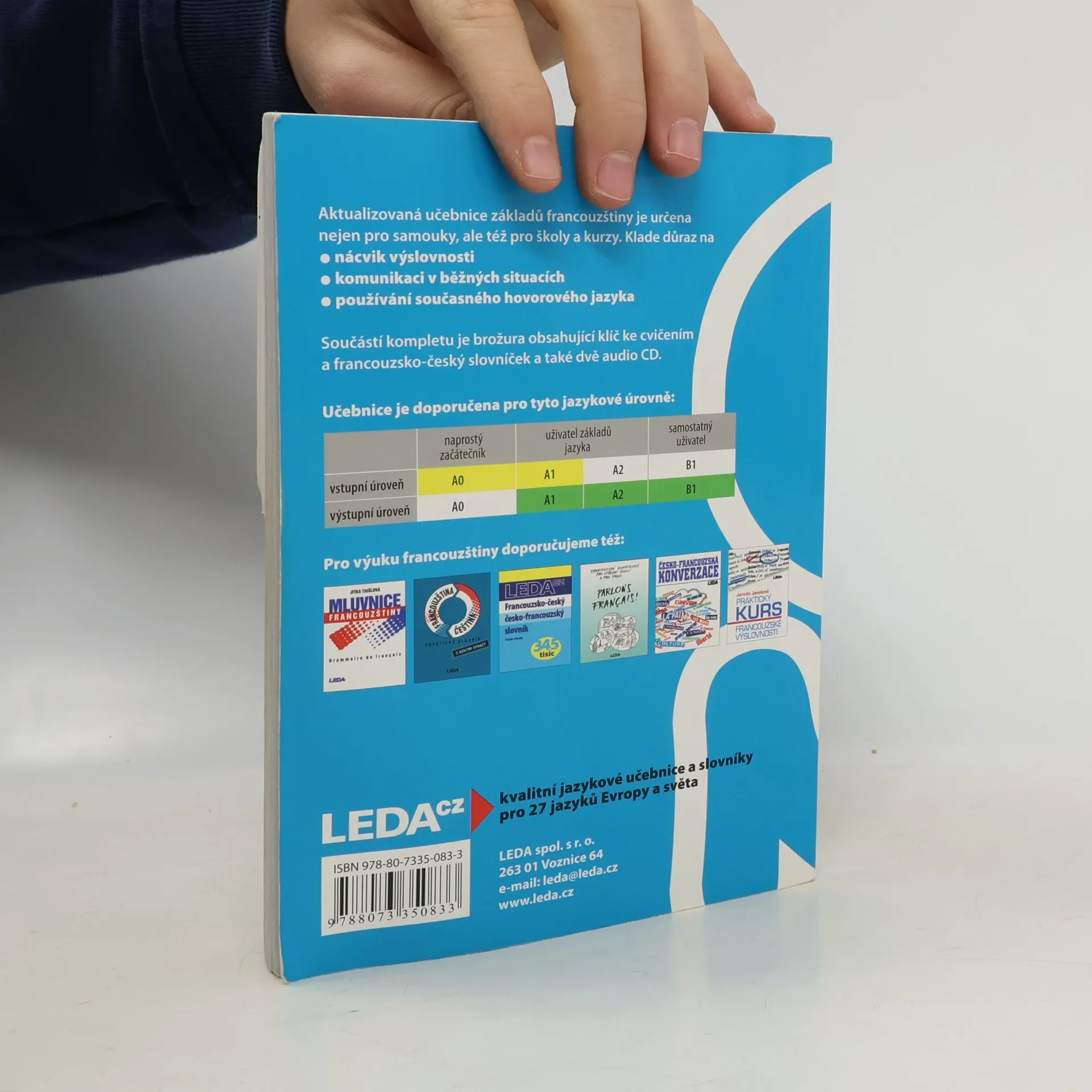 Aktualizovaná a doplněná verze oblíbené učebnice určené samoukům, účastníkům jazykových kurzů, studentům i „věčným“ začátečníkům, kteří si potřebují osvěžit své znalosti. Učebnice má 35 lekcí a každá obsahuje úvodní text, slovíčka, frazeologismy i francouzské reálie spjaté s každodenním životem. Následuje mluvnická část, na niž navazují cvičení. Výslovnost a pravopis jsou probírány v prvních 15 lekcích, každý fonetický jev je důkladně procvičen. Součástí učebnice je jednak brožura s klíčem ke cvičením a francouzsko-českým slovníčkem, jednak dvě audio CD, na nichž rodilí mluvčí nahráli úvodní texty, dialogy, všechna fonetická a vybraná mluvnická cvičení. Pokud uživatel poctivě prostuduje celou učebnici, měly by jeho jazykové znalosti odpovídat nejlepšímu maturitnímu průměru. 1. vydání.