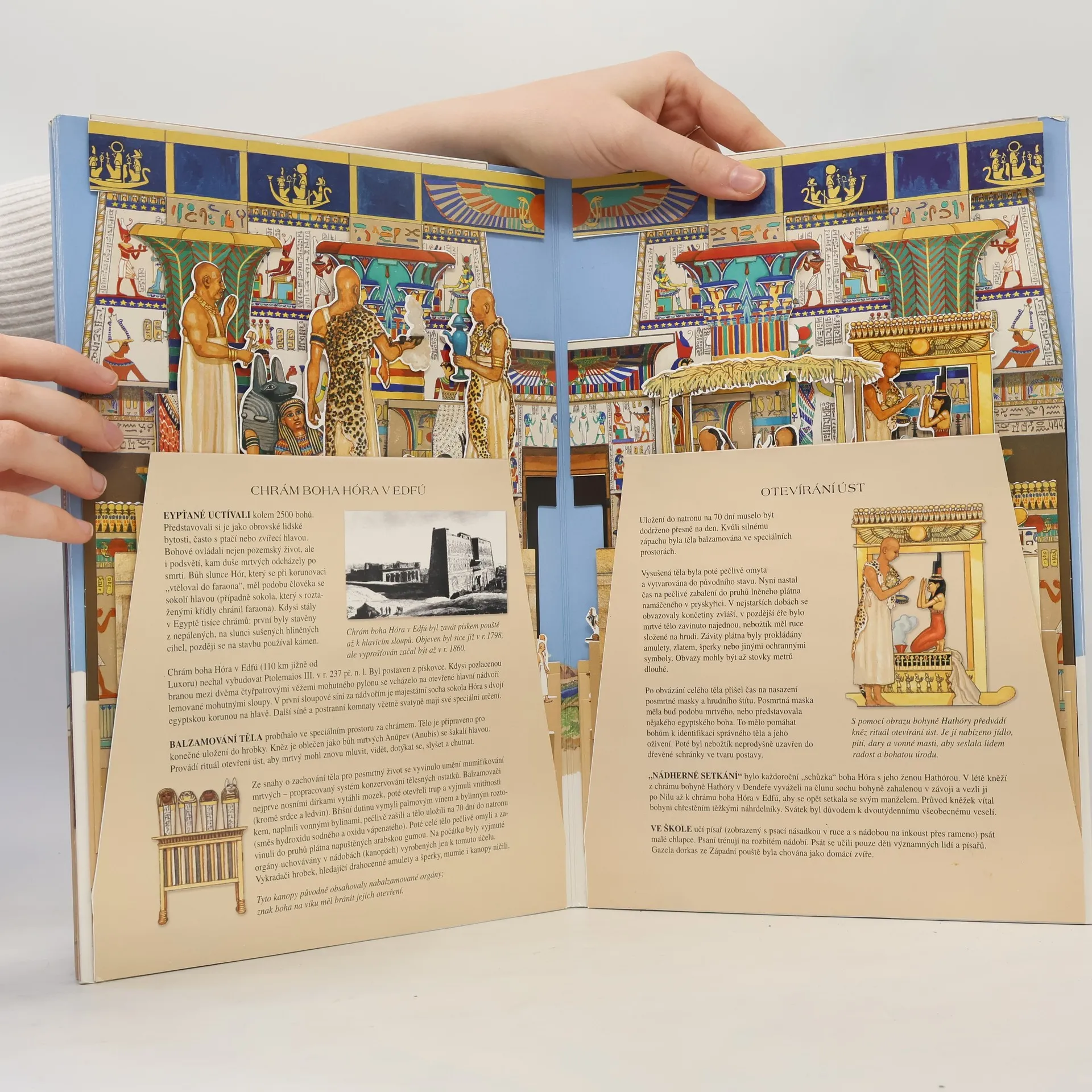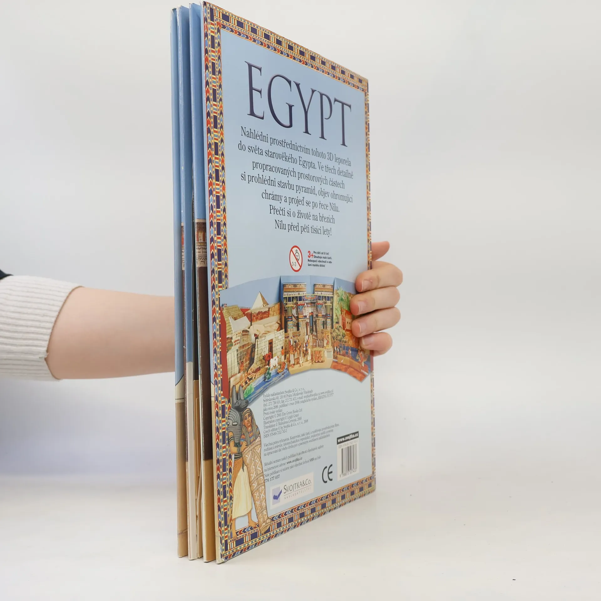 Prostřednictvím tohoto fascinujícího rozkládacího leporela vstoupíte do světa starověkého Egypta. Ve třech detailně propracovaných prostorových částech si prohlédnete stavbu pyramid, objevíte ohromující chrámy a projedete se po řece Nilu. Dozvíte se i mnoho zajímavých informací o životě v Egyptě před 3000 lety. Postavte si část této starověké civilizace přímo u vás doma!