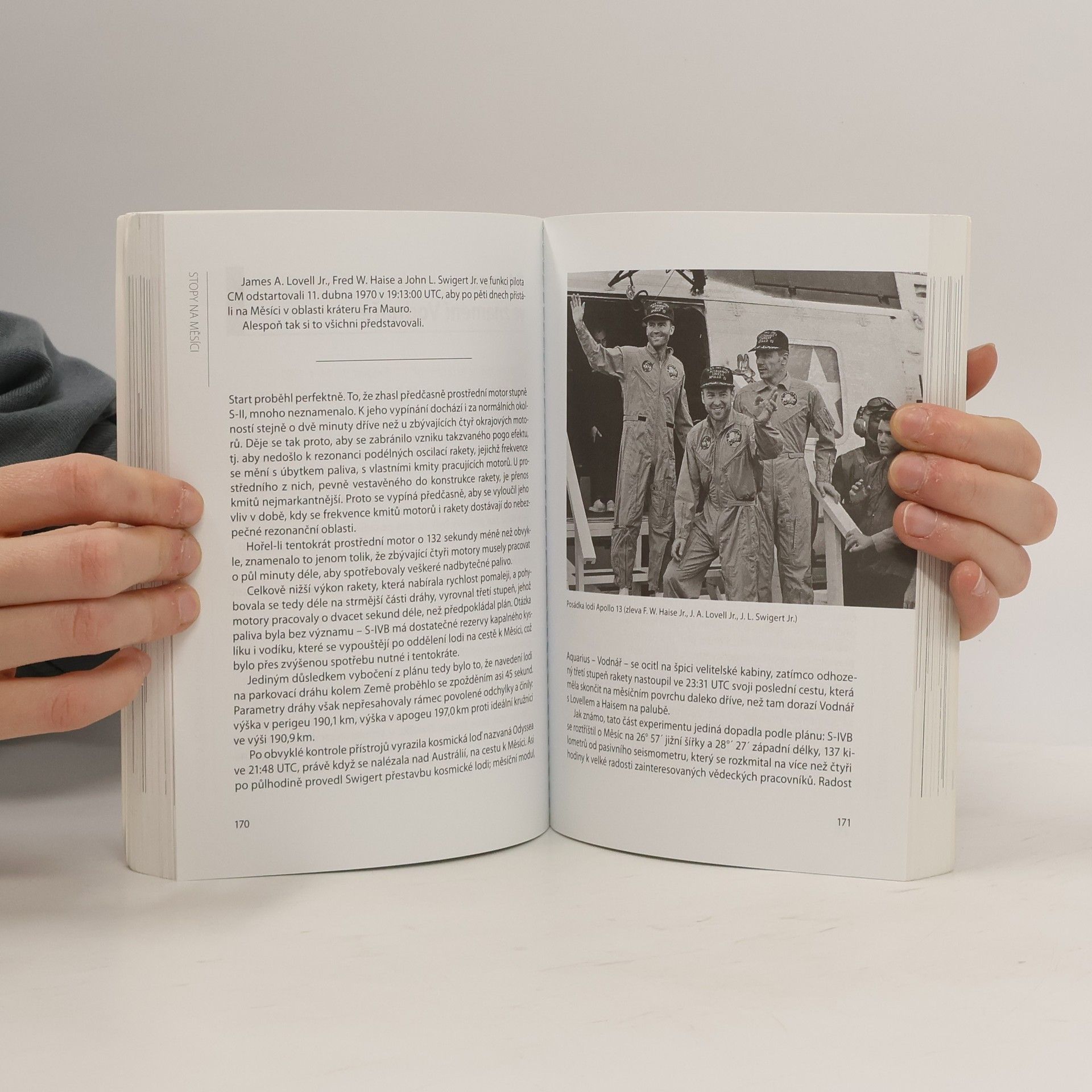 Příběhy posádek kosmických lodí Apollo. Program Apollo se v původních záměrech držel daleko více při zemi. Až projev pětatřicetiletého prezidenta USA Johna F. Kennedyho v roce 1961 definitivně určil ambiciózní cíl; do roku 1970 musí člověk zanechat na tomto vesmírném tělese otisk své stopy. Podařilo se to ještě o rok dřív, v létě roku 1969. Jedenáct let programu Apollo symbolizuje dodnes období neuvěřitelně rychlého technologického rozmachu. Budeme si jej však stále spojovat se soupeřením tehdejších supervelmocí USA a SSSR. Stopy na Měsíci jsou připomenutím celého programu Apollo. Kniha detailně sleduje jeho vývoj od počátku poznamenaného tragickou nehodou, přes triumf známé ,,jedenáctky" až k doznívání na počátku 70. let minulého století.