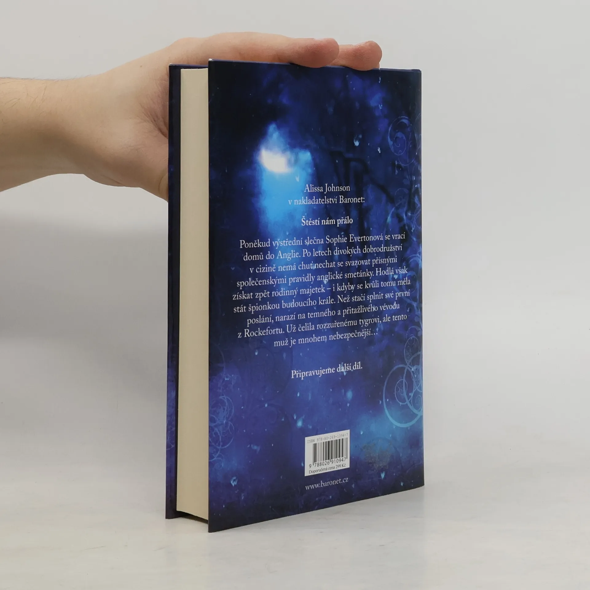Slečna Sophie Evertonová se vrací domů. Nespěchá, po letech divokých dobrodružství v cizině nemá chuť nechat se svazovat přísnými společenskými pravidly Anglie počátku 19. století. Hodlá však získat zpět rodinný majetek – i kdyby se kvůli tomu měla stát špionkou budoucího krále. Než stačí splnit své první poslání, narazí na temného a přitažlivého vévodu z Rockeforte. Sleduje každý její krok a Sophii se zrychluje tep nejen z nebezpečí, které hrozí jejím plánům. Oba uvíznou v ošemetné síti špionáže a touhy. Aby z toho byla láska, potřebují získat důvěru – a samozřejmě kousek štěstí.