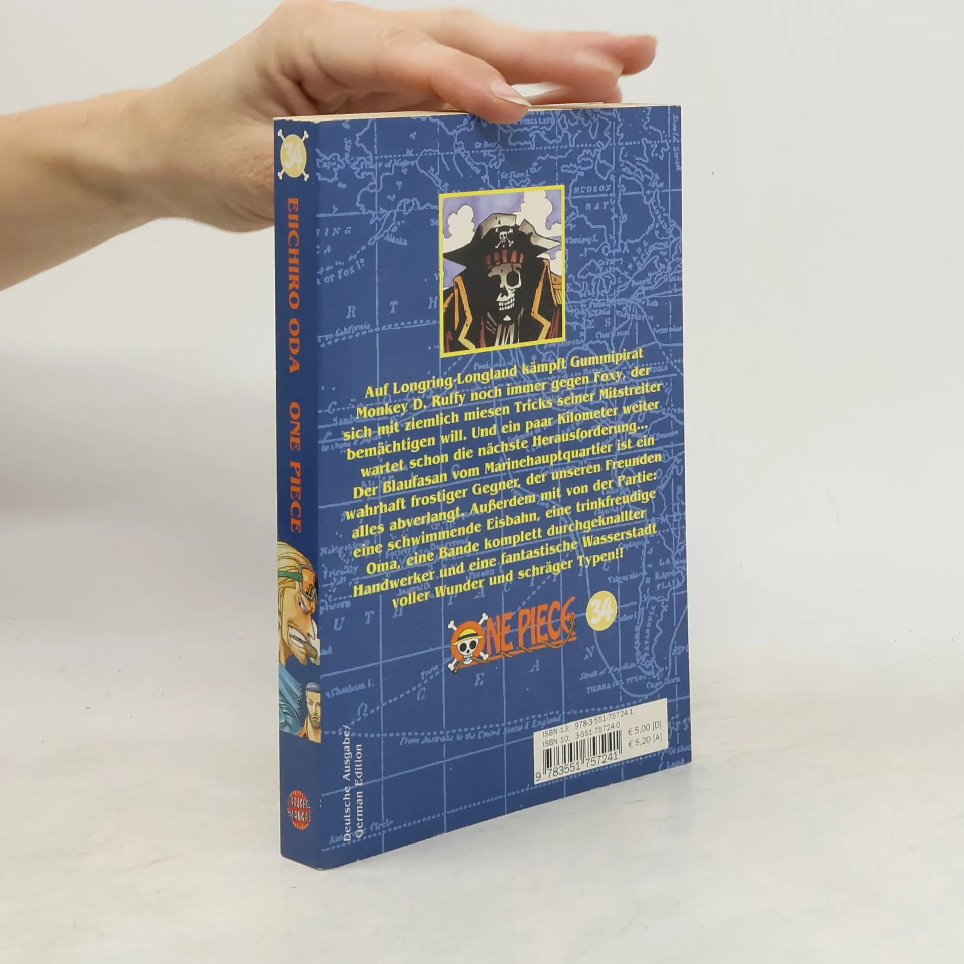 Der beliebteste Manga der Welt! Erlebe die Geschichte des zukünftigen Königs der Piraten in einer unvergleichlichen Geschichte voller Action, Abenteuer, Dramatik, Freundschaft und Humor. Mit über 500 Millionen verkauften Bänden weltweit ist One Piece die meistverkaufte Mangaserie der Geschichte! Auf Longring-Longland kämpft Gummipirat Monkey D. Ruffy noch immer gegen Foxy, der sich mit ziemlich miesen Tricks seiner Mitstreiter bemächtigen will. Und ein paar Kilometer weiter wartet schon die nächste Herausforderung: Der Blaufasan vom Marinehauptquartier ist ein wahrhaft frostiger Gegner, der unseren Freunden alles abverlangt. Außerdem mit von der Partie: eine schwimmende Eisbahn, eine trinkfreudige Oma, eine Bande komplett durchgeknallter Handwerker und eine fantastische Wasserstadt voller Wunder und schräger Typen!! Für Fans von Naruto, Dragon Ball, My Hero Academia und Fairy Tail!