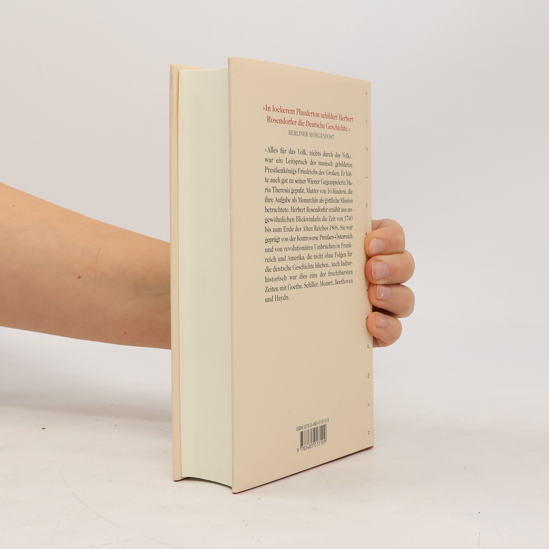Alles für das Volk, nichts durch das Volk war ein Leitspruch des musisch gebildeten Preußenkönigs Friedrich des Großen. Er hätte auch gut zu seiner Wiener Gegenspielerin Maria Theresia gepasst, Mutter von 16 Kindern, die ihre Aufgabe als Monarchin als göttliche Mission betrachtete. Herbert Rosendorfer erzählt aus ungewöhnlichen Blickwinkeln die Zeit von 1740 bis zum Ende des Alten Reiches 1806. Sie war geprägt von der Kontroverse Preußen-Österreich und von revolutionären Umbrüchen in Frankreich und Amerika, die nicht ohne Folgen für die deutsche Geschichte blieben. Auch kulturhistorisch war dies eine der fruchtbarsten Zeiten mit Goethe, Schiller, Mozart, Beethoven und Haydn.