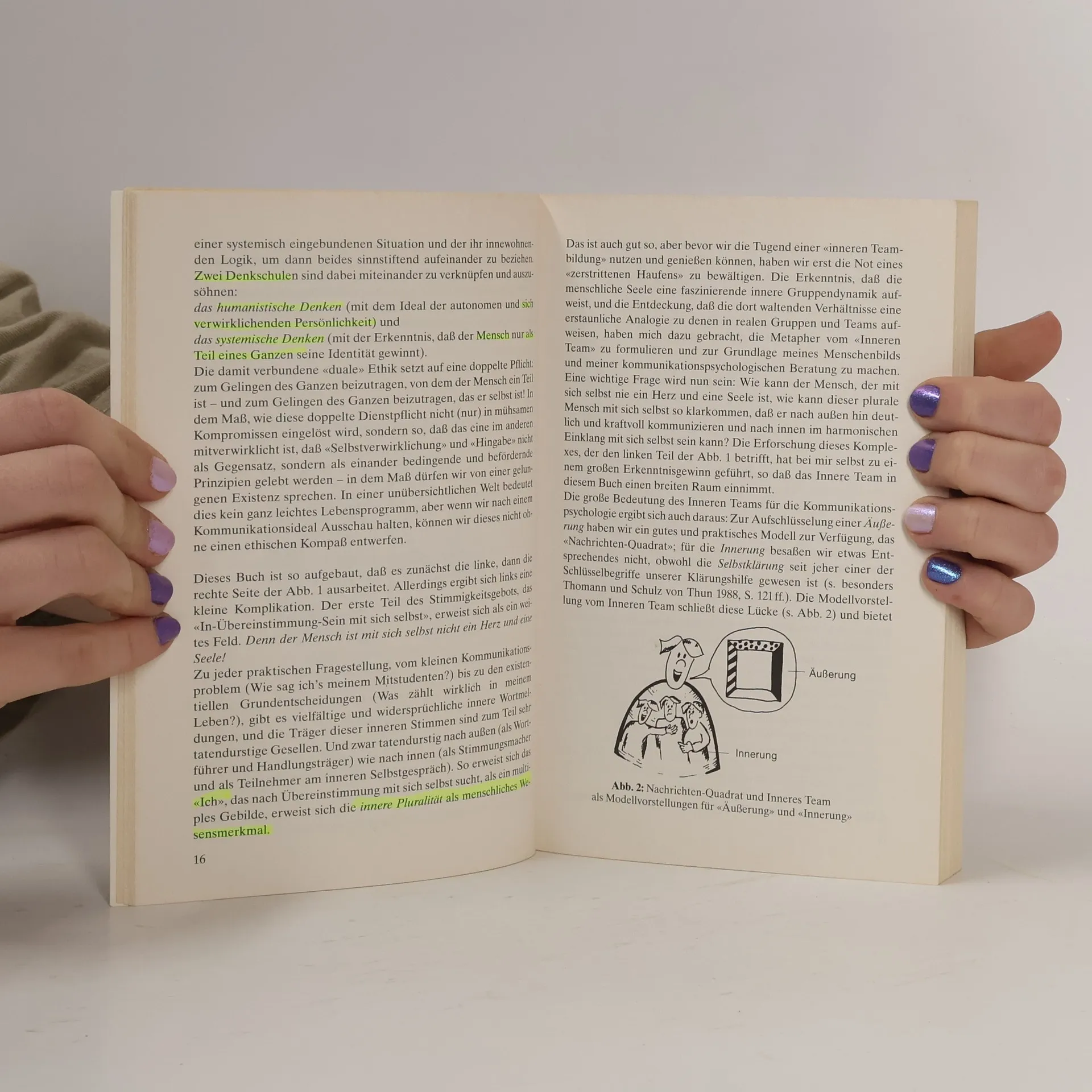 „Miteinander reden 1“ beschreibt Kommunikation als menschliche Begegnung mit vier Schnäbeln und vier Ohren. „Miteinander reden 2“ entwickelt daraus Einsichten in unterschiedliche persönliche Kommunikationsstile. Beide Aspekte verbindet „Miteinander reden 3“ im Modell des „Inneren Teams“, das Sprechen, Handeln und den Aufbau der Persönlichkeit bestimmt. An einer Fülle von Beispielen aus dem beruflichen und privaten Alltag demonstriert Friedemann Schulz von Thun die Arbeitsweise dieses Teams und seines Oberhaupts, das unser Ich vertritt. Wenn wir unsere innere Vielstimmigkeit verstehen lernen und zur inneren Teamentwicklung fähig werden, können wir kraftvoll handeln und stimmig kommunizieren: sowohl in Übereinstimmung mit uns selbst als auch mit den Belangen der Situation.
