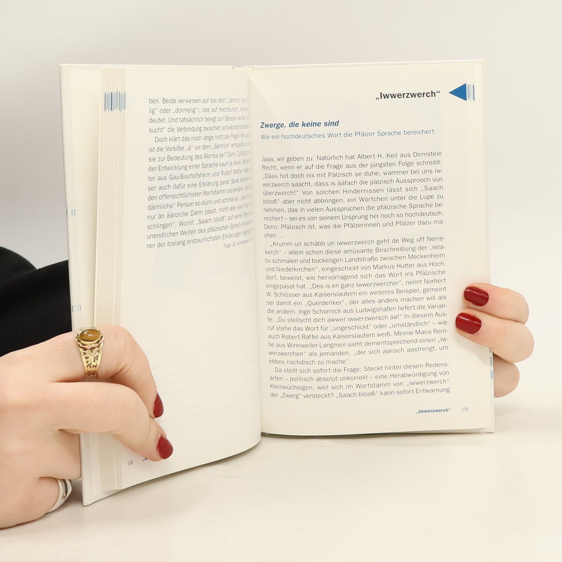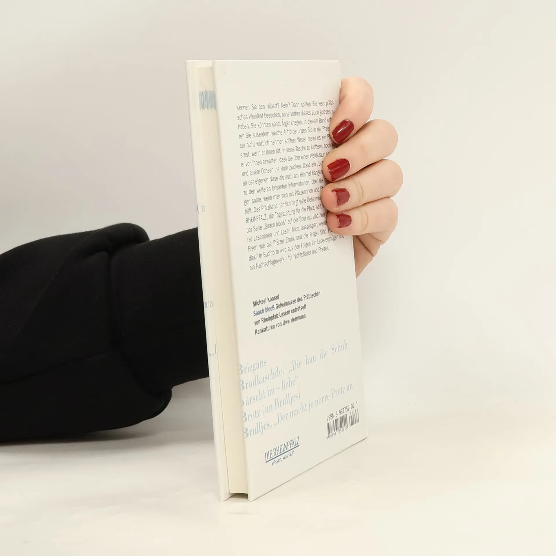 Kennen Sie den Hilbert? Nein? Dann sollten Sie kein pfälzisches Weinfest besuchen, ohne vorher dieses Buch gelesen zu haben. Sie könnten sonst Ärger kriegen. In diesem Band erfahren Sie außerdem, welche Aufforderungen Sie in der Pfalz besser nicht wörtlich nehmen sollten: Weder meint es ein Pfälzer ernst, wenn er Ihnen rät, in seine Tasche zu klettern, noch wird er von Ihnen erwarten, dass Sie über einen Weidezaun springen und einem Ochsen ins Horn zwicken. Dass ein „Butze“ sowohl an der eigenen Nase als auch am Himmel hängen kann, zählt zu den weiteren brisanten Informationen, über die man verfügen sollte, wenn man sich mit Pfälzerinnen und Pfälzern unterhält. Das Pfälzische nämlich birgt viele Geheimnisse, denen die RHEINPFALZ, die Tageszeitung für die Pfalz, seit März 2002 in der Serie „Saach blooß“ auf der Spur ist. Und zwar mit Hilfe ihrer Leserinnen und Leser. Nicht ausgespart werden so heiße Eisen wie die Pfälzer Erotik und die Frage: Sind Pfälzer (zu) dick? In Buchform wird aus den Folgen ein Lesevergnügen und ein Nachschlagewerk – für Nichtpfälzer und Pfälzer.