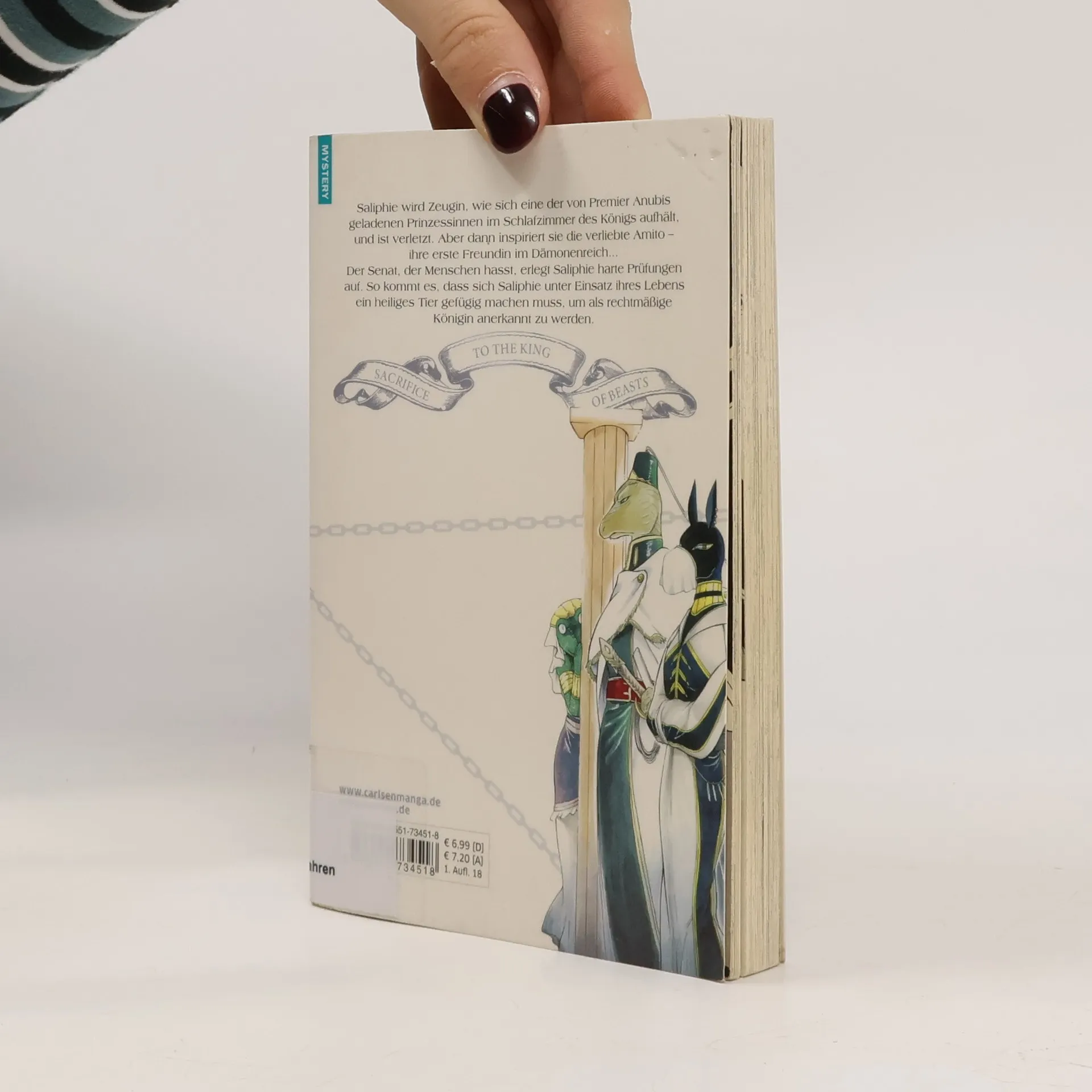 Der König mit den zwei Gesichtern... Saliphie wird Zeugin, wie sich eine der von Premier Anubis geladenen Prinzessinnen im Schlafzimmer des Königs aufhält und ist verletzt. Aber dann inspiriert sie die verliebte Amito – ihre erste Freundin im Dämonenreich... Der Senat, der Menschen hasst, erlegt Saliphie harte Prüfungen auf. So kommt es, dass sich Saliphie unter Einsatz ihres Lebens ein heiliges Tier gefügig machen muss, um als rechtmäßige Königin anerkannt zu werden. Eine bittersüße, fantasievolle Liebesgeschichte für Romantiker*innen und Fans von „Die Schöne und das Biest“! Weitere Informationen: - Abgeschlossen in 15 Bänden - Herrliche Zeichnungen, die zum Träumen einladen - Perfekt für alle Märchenliebhaber*innen ab 10 Jahren