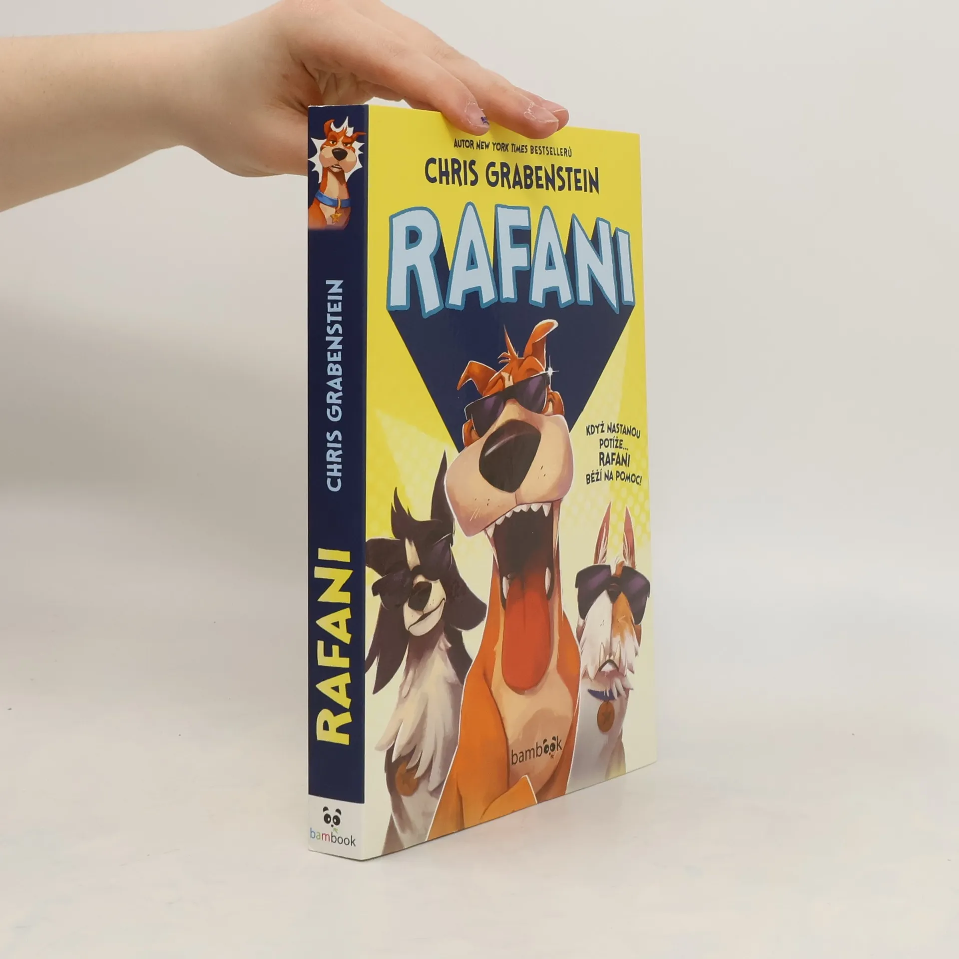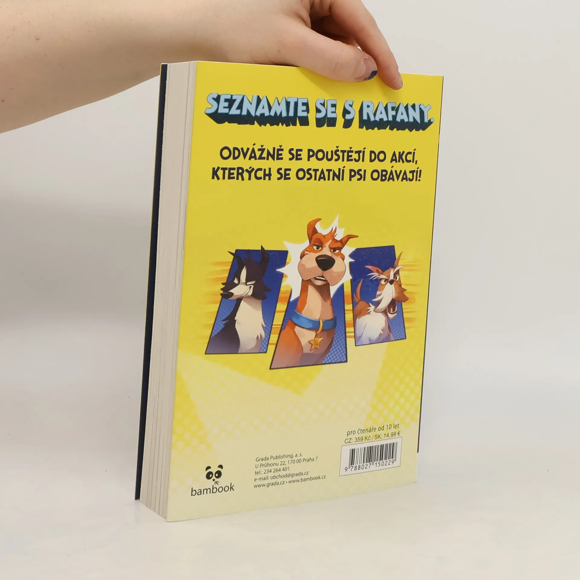 Nic není příliš nebezpečné… pro Rafany! Připravte se na RAFANY! Štěňata se topí? ZÁKEŘNÝ DOKTOR slídí po tajných informacích? MIMOZEMSKÉ VEVERKY útočí na Zemi? To smrdí průšvihem. Někdo by měl radši zavolat RAFANY! FRED, odrbaný toulavý pes, který hledá milující domov, si přeje, aby byl víc jako jeho hrdinové z populárního televizního seriálu Rafani. Ale on není ODVÁŽNÝ ani STATEČNÝ… Je jen obyčejný pes. Fred se ale výrazně podobá BARONOVI, hlavní hvězdě Rafanů. A jakmile Baron potřebuje dvojníka, je Fred dokonalou volbou. Může se ustrašený pes stát filmovým HRDINOU? A co teprve v opravdovém světě plném NÁSTRAH? Zvládnou Fred a ostatní Rafani překonat SKUTEČNÉ NEBEZPEČÍ? Zakousněte se do ZLODUCHŮ v tomto PACKÓZNÍM dobrodružství, z kterého se POTRHÁTE smíchy.