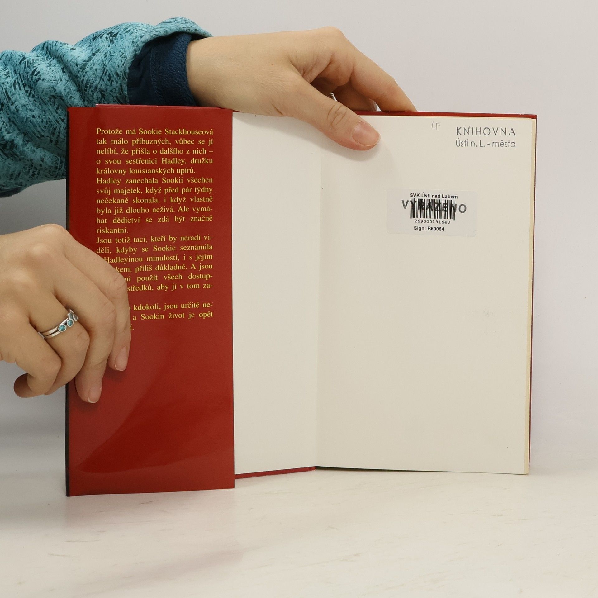 Protože má Sookie Stackouseová tak málo příbuzných, vůbec se jí nelíbí, že přišla o další - o svou sestřenici Hadley, družku královny luisianských upírů. Hadley zanechala Sookie všechen svůj majetek, když před pár týdny nečekaně skonala, i když vlastně byla již dlouho neživá. Ale vymáhat dědictví se zdá být značně riskantní. Jsou totiž tací, kteří by neradi viděli, kdyby se Sookie seznámila s Hadleyinou minulostí, a i s jejím majetkem, příliš důkladně. A jsou připraveni použít všech dostupných prostředků, aby jí v tom zabránili. A ať je to kdokoli, jsou určitě nebezpeční, a Sookin život je opět v ohrožení.