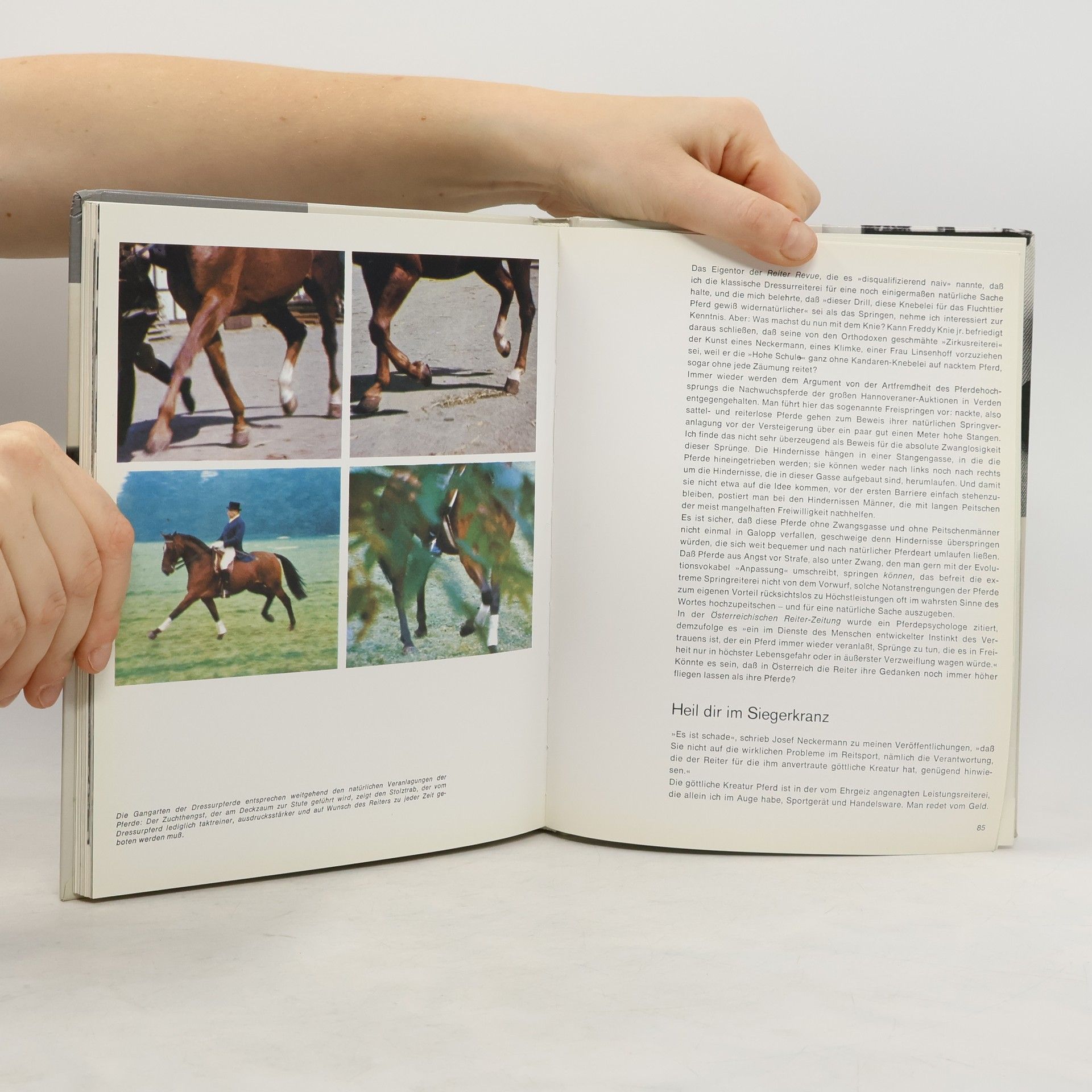 "Wissen ist die einzige menschenwürdige Grundlage für ein Leben mit Tieren." Diese Formulierung Horst Sterns steht über seinen zahlreichen Berichten, die für das Verständnis zwischen Mensch und Tier neue Markierungen setzen.In diesem Buch beschreibt er die Rolle des Pferdes in 5000 Jahren Menschheitsgeschichte. Das Pferd von heute, sagt Stern, lebt entweder als Sportgerät des Menschen oder es lebt tatsächlich nur noch im Zoo. Tierliebe allein verschaffe ihm keinen Raum mehr in unserer Leistungs- und Industriegesellschaft.Vor allem wehrt sich Stern gegen die Vokabeln von Menschlichkeit, Fairness und Ritterlichkeit im Reitsport. Sein Plädoyer gegen die heutige Form des Springsports hat ihm schon nach seiner Fernsehsendung "ein Bombardement verbaler Roßäpfel aus erzürnten Fachkreisen" eingebracht.