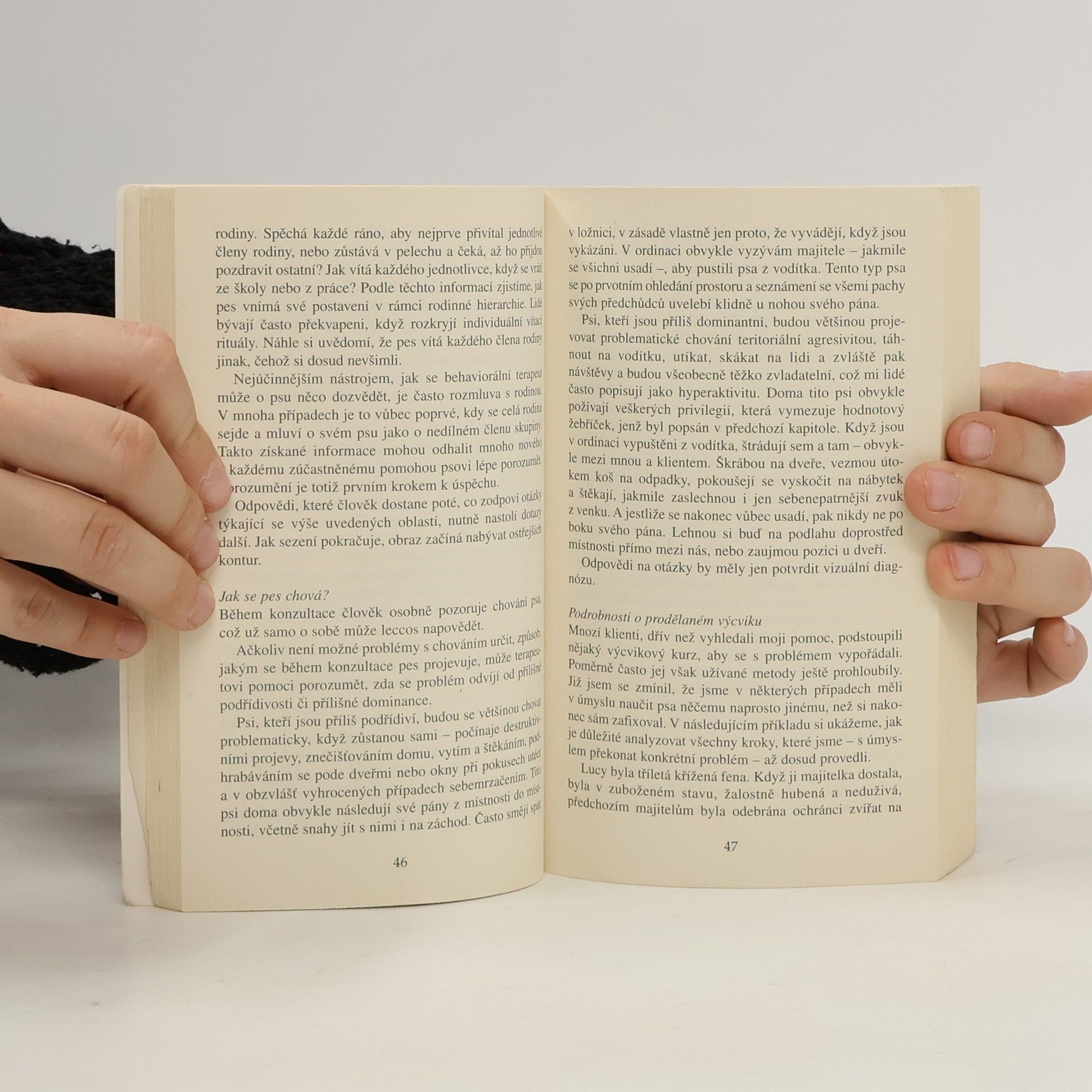 Projevy problémového chování u psů a jejich řešení pomocí metod behaviorální terapie. Obecné zásady behaviorální terapie, jejíž podstatou je odhalování a odstraňování příčin způsobujích nežádoucí chování zvířete. Konkrétní projevy problémového chování a způsoby řešení.Příklady z terapeutické praxe autora. Behaviorální terapie je protikladem klasického tréninkového přístupu. Vychází z analýzy prostředí, ve kterém zvíře žije, celkové situace v rodině atd.