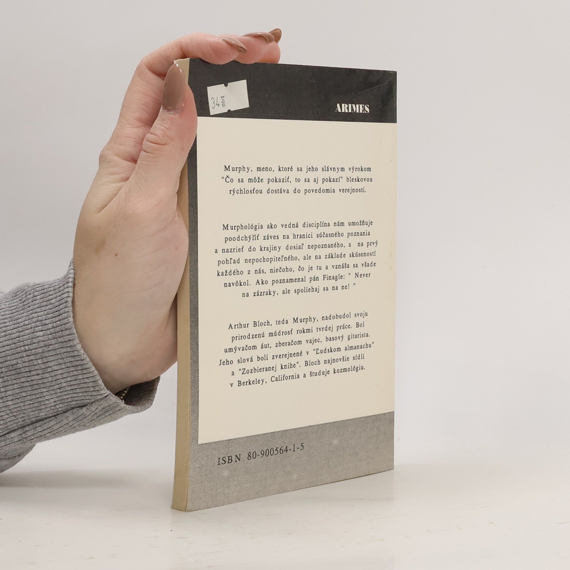 Murphy, meno, ktoré sa jeho slávnym výrokom "Čo sa môže pokaziť, to sa aj pokazí" bleskovou rýchlosťou dostáva do povedomia verejnosti. Murphológia ako vedná disciplína nám umožňuje poodchýliť záves na hranici súčasného poznania a nazrieť do krajiny dosiaľ nepoznaného, a na prvý pohľad nepochopiteľného, ale na základe skúseností každého z nás, niečoho, čo je tu a vznáša sa všade navôkol. Ako poznamenal pán Finagle: ” Never na zázraky, ale spoliehaj sa na ne! " Arthur Bloch, teda Murphy, nadobudol svoju prirodzenú múdrosť rokmi tvrdej práce. Bol umývačom áut, zberačom vajec, basový gitarista. Jeho slová boli zverejnené v "Ľudskom almanachu" a "Zozbieranej knihe". Bloch najnovšie sídli v Berkeley, California a študuje kozmológiu.