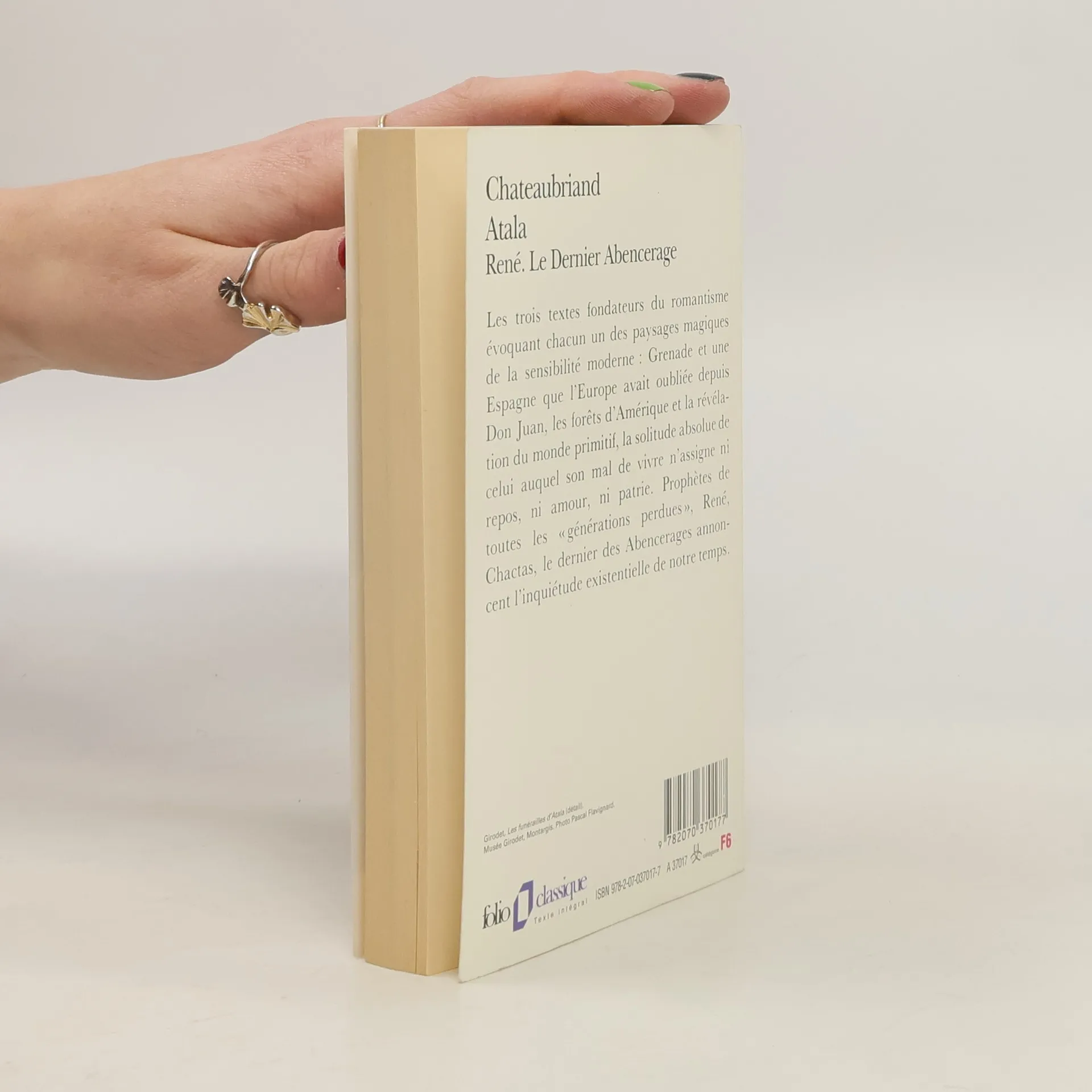 Sur les bords du Mississippi, la vie du jeune Chactas commence mal. Sa tribu vaincue, son village détruit, son père mort, ce jeune Indien intrépide, après un rapide passage par la ville, a été fait prisonnier par ses ennemis héréditaires. Promis à une mort atroce, ses derniers jours sont pourtant illuminés par la présence d'Atala, la fille du grand chef. Cet amour lui rendra peut-être la vie. Les deux jeunes gens pourront-ils s'enfuir et échapper à leur destin ? Sur fond d'Amérique et de bons sauvages, Chateaubriand revisite l'histoire de la fille du geôlier, à la mode romantique : en proie au mal du siècle, Atala et Chactas font partie de ces êtres d'exception qui ne connaîtront jamais de répit. L'étroitesse du monde est une torture qui ravage les grandes âmes : telle est la sombre leçon que Chateaubriand, de René aux Mémoires d'outre-tombe, ne cessera de répéter, à travers une écriture majestueuse à force de souffrances. --Karla Manuele