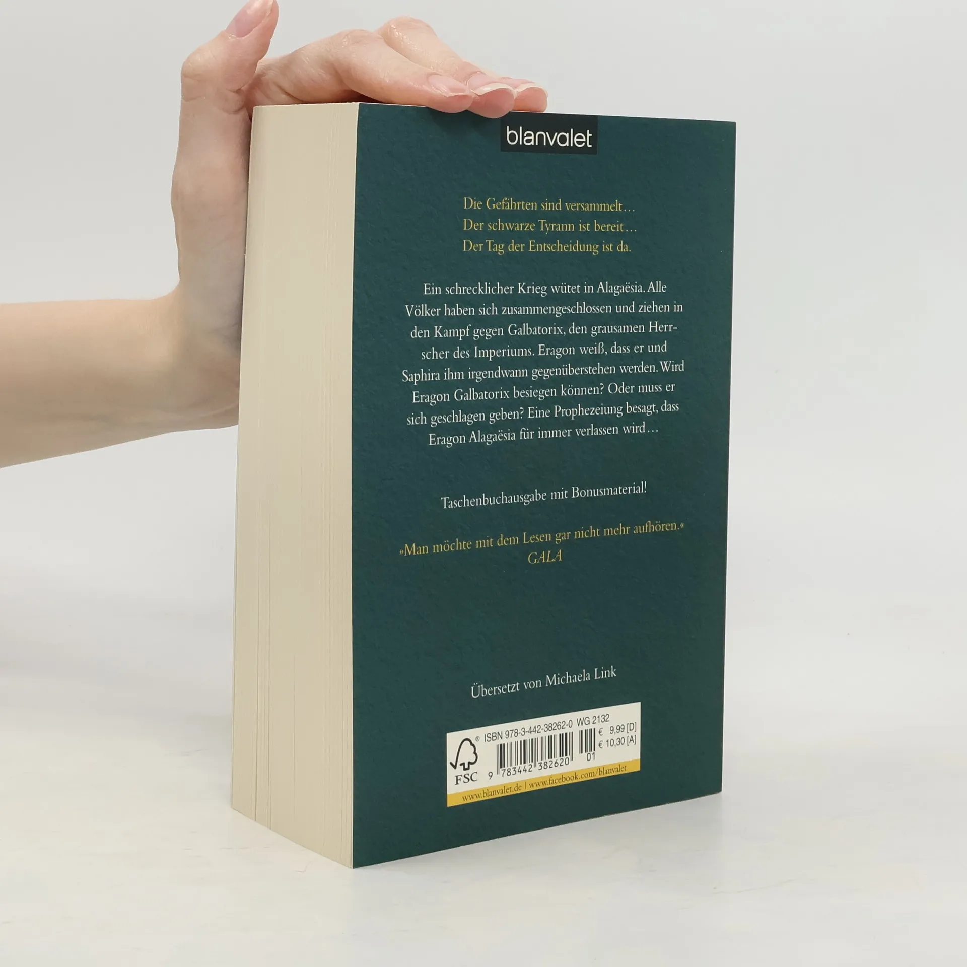Ein schrecklicher Krieg wütet in Alagaësia. Alle Völker haben sich zusammengeschlossen und ziehen in den Kampf gegen Galbatorix, den grausamen Herrscher des Imperiums. Eragon weiß, dass er und Saphira ihm irgendwann gegenüberstehen werden. Treue Gefährten kämpfen an seiner Seite, allen voran die wunderschöne, kluge Elfe Arya. Doch der finstere König ist nahezu unbesiegbar, denn er besitzt die Macht zahlloser Drachen, deren Seelenhort, den Eldunarí, er an sich gerissen hat. Ein neuer Drache und ein neuer Drachenreiter verändern das Kräfteverhältnis. Wird Eragon Galbatorix besiegen können? Oder muss er sich geschlagen geben? Eine Prophezeiung besagt, dass Eragon Alagaësia für immer verlassen wird …