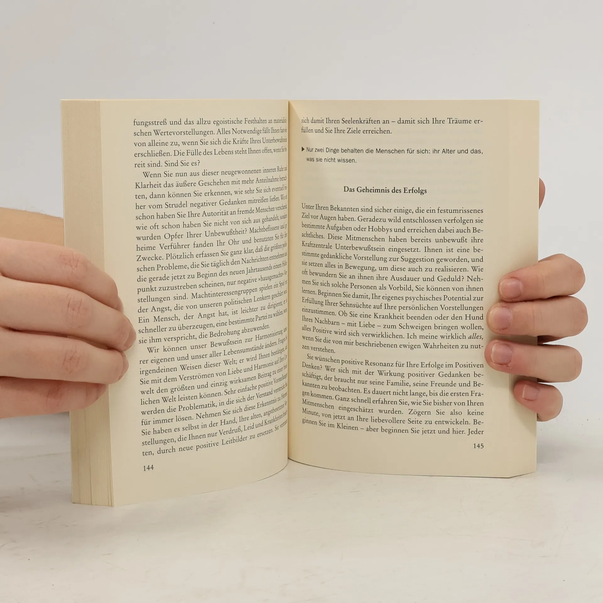 In diesem Standardwerk über die Kunst der erfolgreichen Lebensgestaltung wird anhand zahlreicher Fallgeschichten die Macht von Suggestion und Positivem Denken anschaulich erklärt. Mit Hilfe der hier erläuterten geistigen Einstellungen und Übungen gelingt es, die tief im Inneren verborgene Kraftquelle zu erschließen und sie für eine harmonische Partnerschaft, für Berufserfolg und Gesundheit zu nutzen.