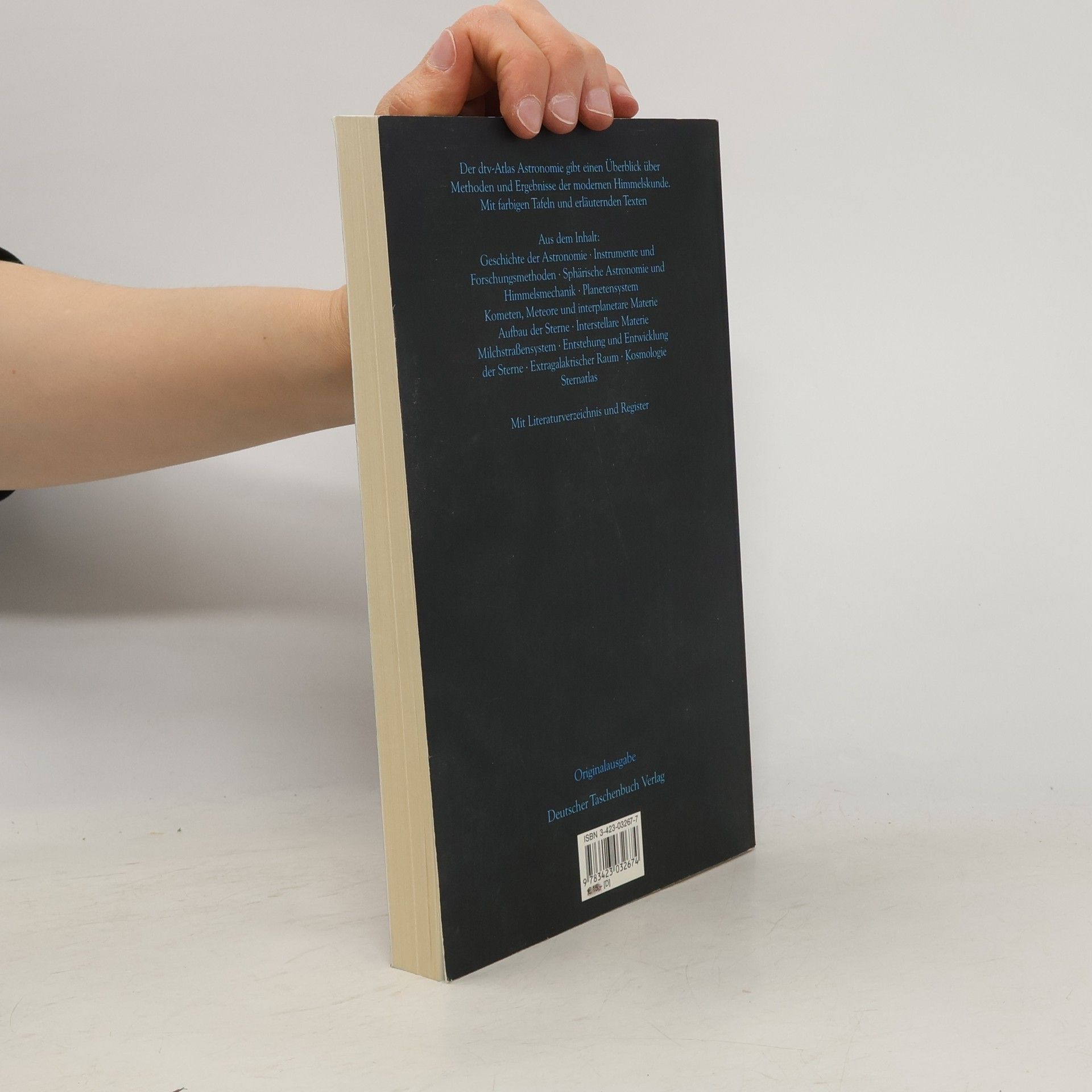 Mit 135 Abbildungsseiten in Farbe Grafiker: Harald und Ruth Bukor Der ›dtv-Atlas Astronomie‹ versucht auf verhältnismäßig knappem Raum möglichst viel Grundlagenwissen zum Thema Kosmos zu vermitteln, wobei vor allem die Sachgebiete im Vordergrund stehen, die für den Anfänger oder Nichtfachmann als Voraussetzung bei seiner theoretischen und praktischen Beaschäftigung mit dem Weltall von Bedeutung sind. Das Spektrum der behandelten Themen reicht von der Geschichte der Astronomie und ihren klassischen Gebieten über die physikalische Erforschung der Himmelskörper bis zu den modernen Theorien über Struktur und Entwicklung des ganzen Weltalls. Den Abschluss des Bandes bilden ein ausführlicher Sternaltlas sowie eine Bibliographie und ein Register. Bei jeder Neuauflage wird das Buch vom Autor gewissenhaft überarbeitet und um neueste, gesicherte Erkenntnisse erweitert.