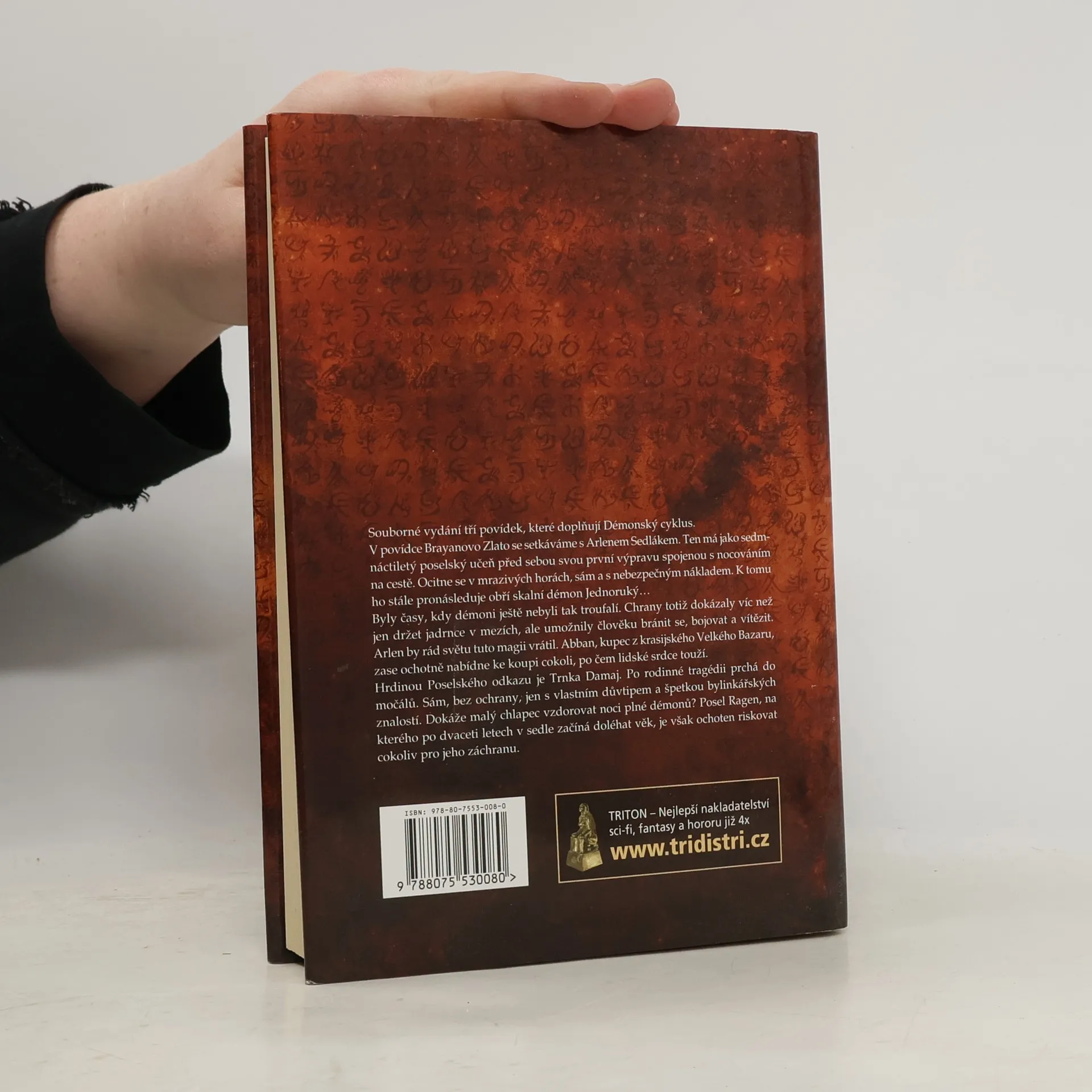 Souborné vydání tří povídek, které doplňují Démonský cyklus. V povídce Brayanovo Zlato se setkáváme s Arlenem Sedlákem. Ten má jako sedmnáctiletý poselský učeň před sebou svou první výpravu spojenou s nocováním na cestě. Ocitne se v mrazivých horách, sám a s nebezpečným nákladem. K tomu ho stále pronásleduje obří skalní démon Jednoruký… Byly časy, kdy démoni ještě nebyli tak troufalí. Chrany totiž dokázaly víc než jen držet jadrnce v mezích, ale umožnily člověku bránit se, bojovat a vítězit. Arlen by rád světu tuto magii vrátil. Abban, kupec z krasijského Velkého Bazaru, zase ochotně nabídne ke koupi cokoli, po čem lidské srdce touží. Hrdinou Poselského odkazu je Trnka Damaj. Po rodinné tragédii prchá do močálů. Sám, bez ochrany, jen s vlastním důvtipem a špetkou bylinkářských znalostí. Dokáže malý chlapec vzdorovat noci plné démonů? Posel Ragen, na kterého po dvaceti letech v sedle začíná doléhat věk, je však ochoten riskovat cokoliv pro jeho záchranu.