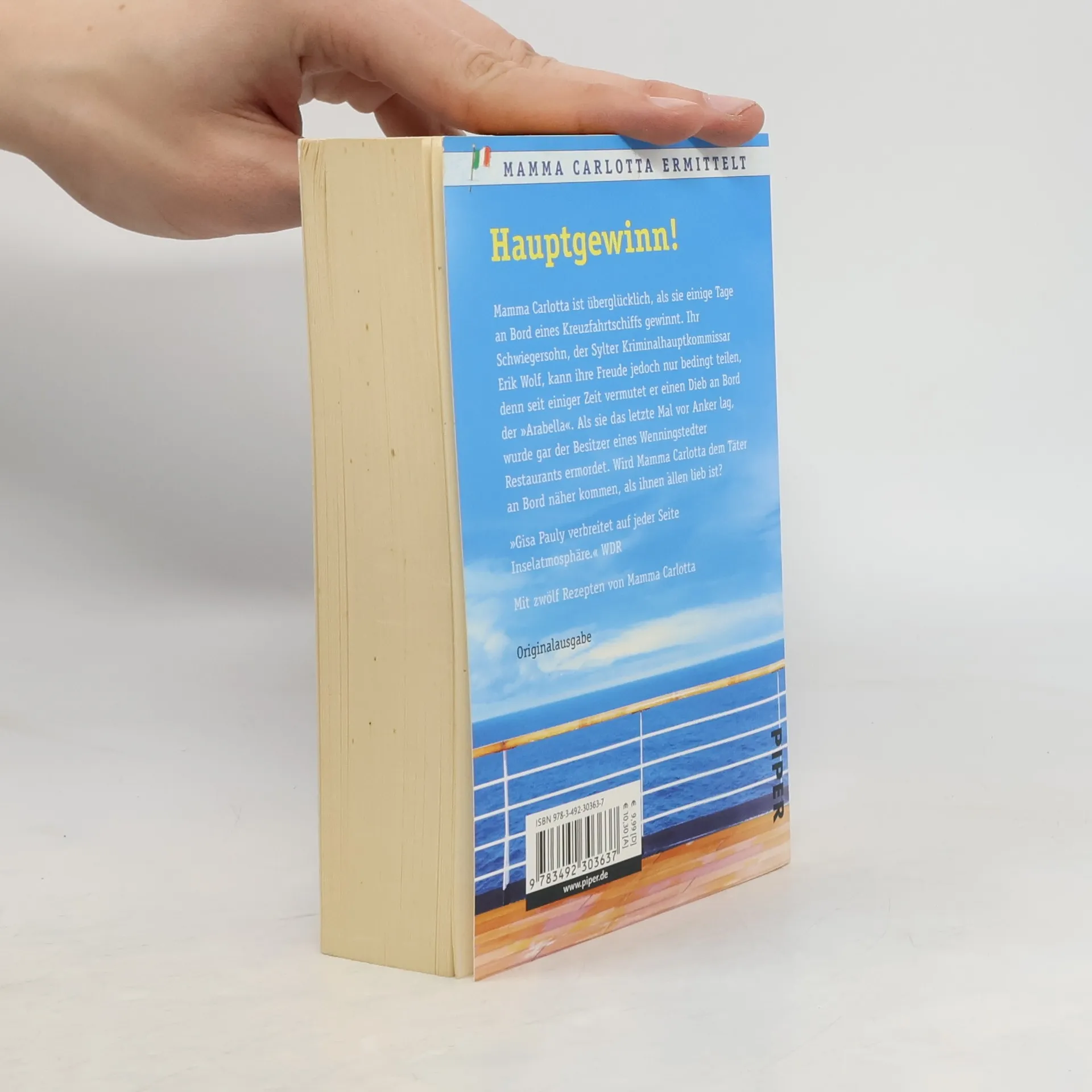 Hauptgewinn! Mamma Carlotta ist überglücklich, als sie einige Tage an Bord eines Kreuzfahrtschiffs gewinnt. Ihr Schwiegersohn, der Sylter Kriminalhauptkommissar Erik Wolf, kann ihre Freude jedoch nur bedingt teilen, denn seit einiger Zeit vermutet er einen Dieb an Bord der »Arabella«. Als sie das letzte Mal vor Anker lag, wurde gar der Besitzer eines Wenningstedter Restaurants ermordet. Wird Mamma Carlotta dem Täter an Bord näher kommen, als ihnen allen lieb ist? Perfekte Cozy Crime für Ihre Strandlektüre – machen Sie Urlaub mit Mama Carlotta! Bücher für den Urlaub gibt es viele. Hervorragende Regionalkrimis ebenso. Doch kaum ein anderer Nordsee-Krimi bringt das Lebensgefühl auf Sylt mit so viel Charme und Situationskomik auf den Punkt wie die Mamma Carlotta-Reihe. Lassen Sie die Seele baumeln und schmökern Sie nach Herzenslust – die Romane von Gisa Pauly sind ein pures Vergnügen und ein perfekter Tipp für Ihre Urlaubslektüre. »Man muss sie einfach mögen, die italienische Miss Marple von Sylt.« Brigitte