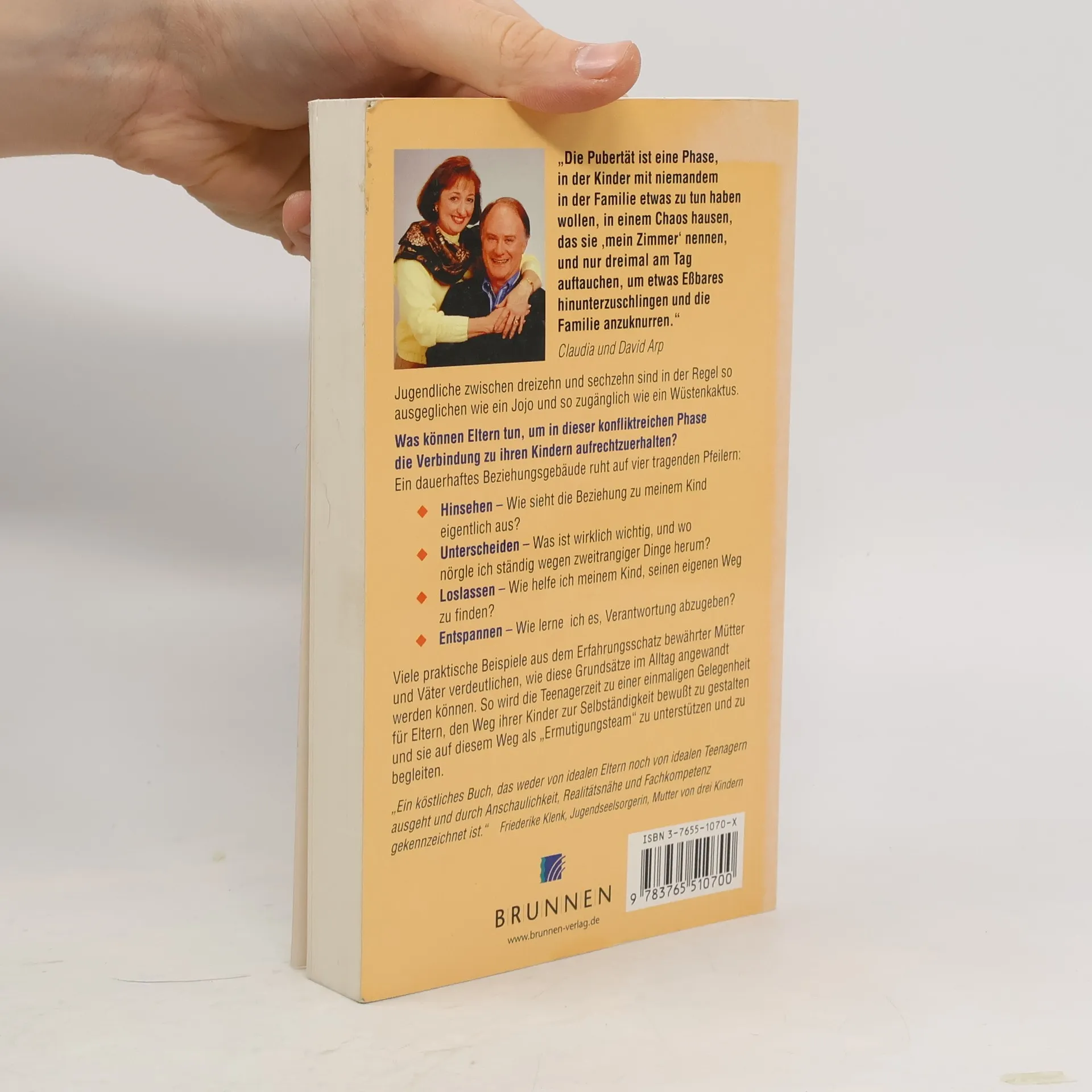 Jugendliche zwischen 13 und 16 sind so ausgeglichen wie ein Jojo und so zugänglich wie ein Kaktus, sie hausen in einem Chaos, das sie 'mein Zimmer' nennen und tauchen dreimal am Tag auf, um etwas Essbares hinunterzuschlingen und die Familie anzuknurren... Die Teenagerzeit - keine latente Dauerkrise, sondern eine einmalige Gelegenheit für Eltern, den Weg ihrer Kinder zu Verantwortung und Selbstständigkeit bewusst zu lenken. Claudia und David Arp zeigen in praktischen Beispielen, wie Eltern ihre Kinder als "Ermutigungsteam" unterstützen und begleiten können. Lernen Sie, die Teenagerzeit für sich und Ihre Kinder bewusst zu gestalten: durch Hinsehen, Unterscheiden, Loslassen, Entspannen ...