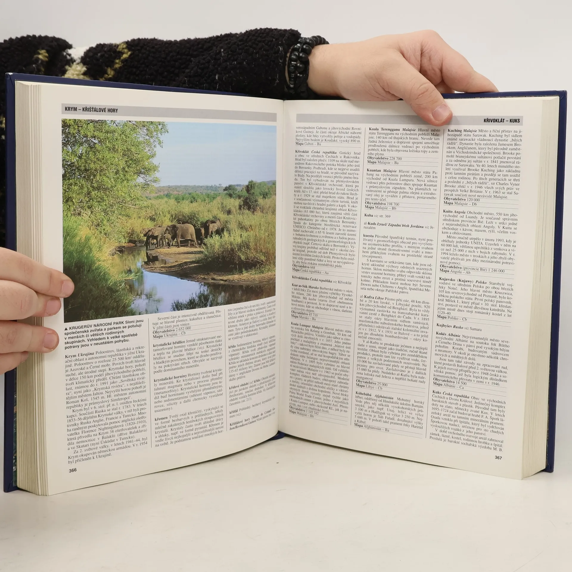 Dočtete se v ní o více než 6 500 pamětihodností naší planety, a to jak přírodních, tak vytvořených člověkem. Získáte správné povědomí o tom, kde leží místa, o kterých se hovoří v denních zprávách, kde se nacházejí oblasti, které přitahují mimořádný zájem turistů, kraje, které často postihují přírodní neštěstí, nebo významná naleziště přírodních zdrojů. Najdete zde například odpověď na otázky: Jak žijí lidé v různých částech světa a jaká je jejich kultura a tradice? Jaký mají ekonomický potenciál jednotlivé země a jejich hlavní města a jací jsou lidé, kteří v nich žijí? Která jsou nejméně probádaná místa na Zemi? Proč a jak vznikají orkány? Kde se nacházejí nejvyšší a nejširší vodopády? Jak vznikly neuvěřitelné památky z dob dávných civilizací? Knížka obsahuje 7 500 hesel, popis 193 zemí, více než 250 barevných vyobrazení a 174 barevných map.... celý text