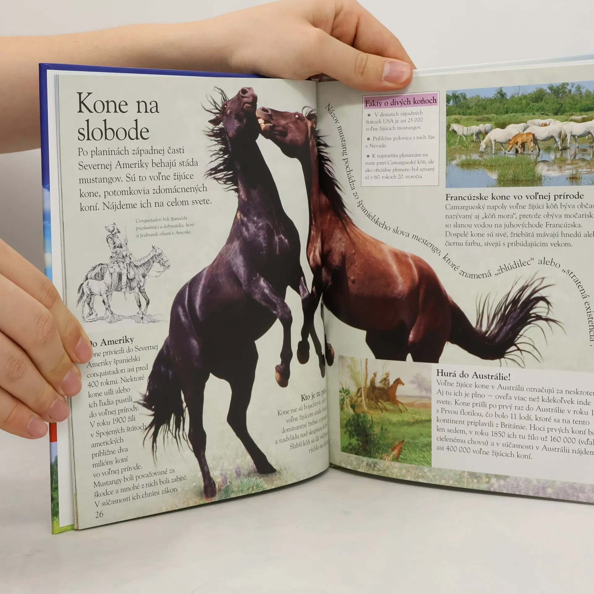 Hovorí sa, že najkrajší pohľad na svet je z konského chrbta. Tak naň vysadni a zoznám sa bližšie s týmito krásnymi a ušľachtilými zvieratami. Prezri si stavbu ich tela a nauč sa, ako sa o kone správne starať. Zisti, ako spolu kone komunikujú a čo robia zaklínači koní. Prečítaj si, aký vzťah mali ku koňom Indiáni alebo stredovekí rytieri. Spoznaj, aké existujú typy pretekov a štýly jazdy. Otestuj si svoje vedomosti v kvízoch a hrách a uži si skvelú zábavu!
