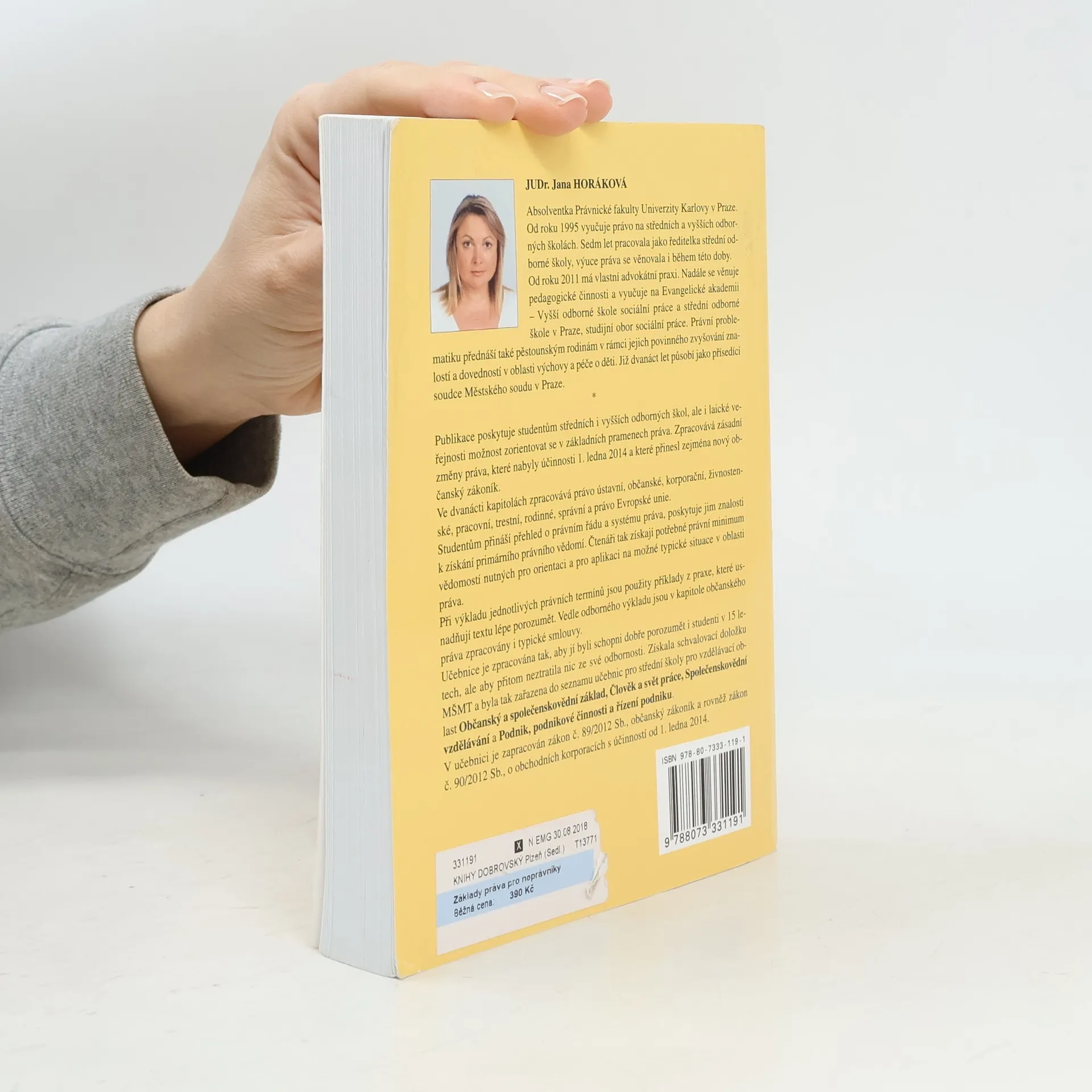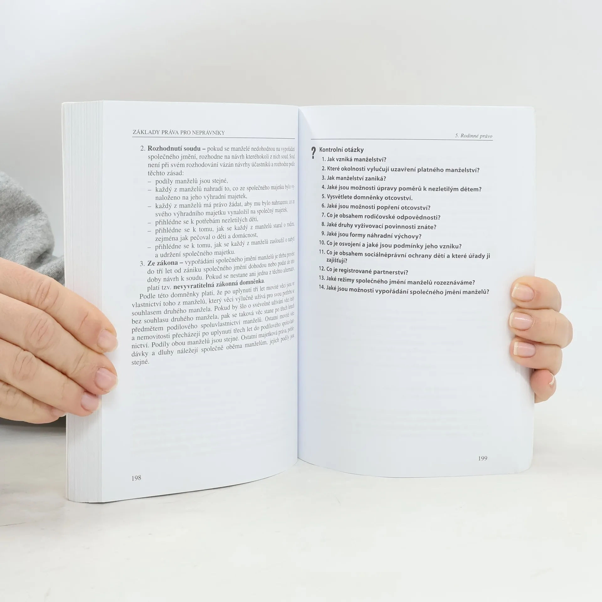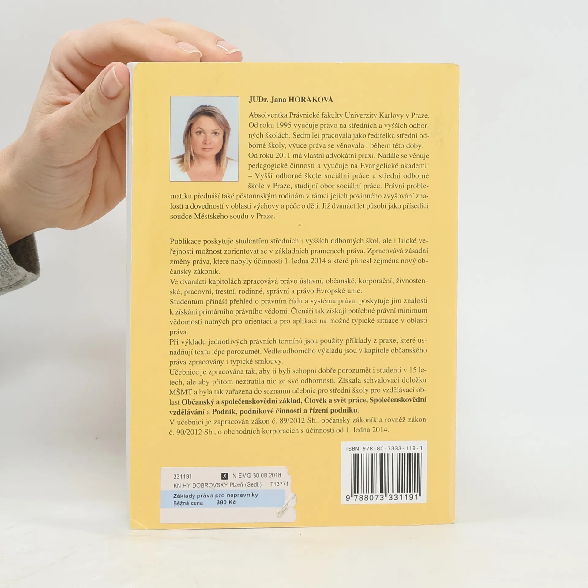Publikace poskytuje studentům středních i vyšších odborných škol, ale i laické veřejnosti možnost zorientovat se v základních pramenech práva. Zpracovává zásadní změny práva, které nabyly účinnosti 1. ledna 2014 a které přinesl zejména nový občanský zákoník. Ve dvanácti kapitolách zpracovává právo ústavní, občanské, korporační, živnostenské, pracovní, trestní, rodinné, správní a právo Evropské unie. Studentům přináší přehled o právním řádu a systému práva, poskytuje jim znalosti k získání promárního právního vědomí. Čtenáři tak získají potřebné právní minimum vědomostí nutných pro orientaci a pro aplikaci na možné typické situace v oblasti práva. Při výkladu jednotlivých právních termínů jsou použity příklady z praxe, které usnadňují textu lépe porozumět. Vedle odborného výkladu jsou v kapitole občanského práva zpracovány i typické smlouvy.