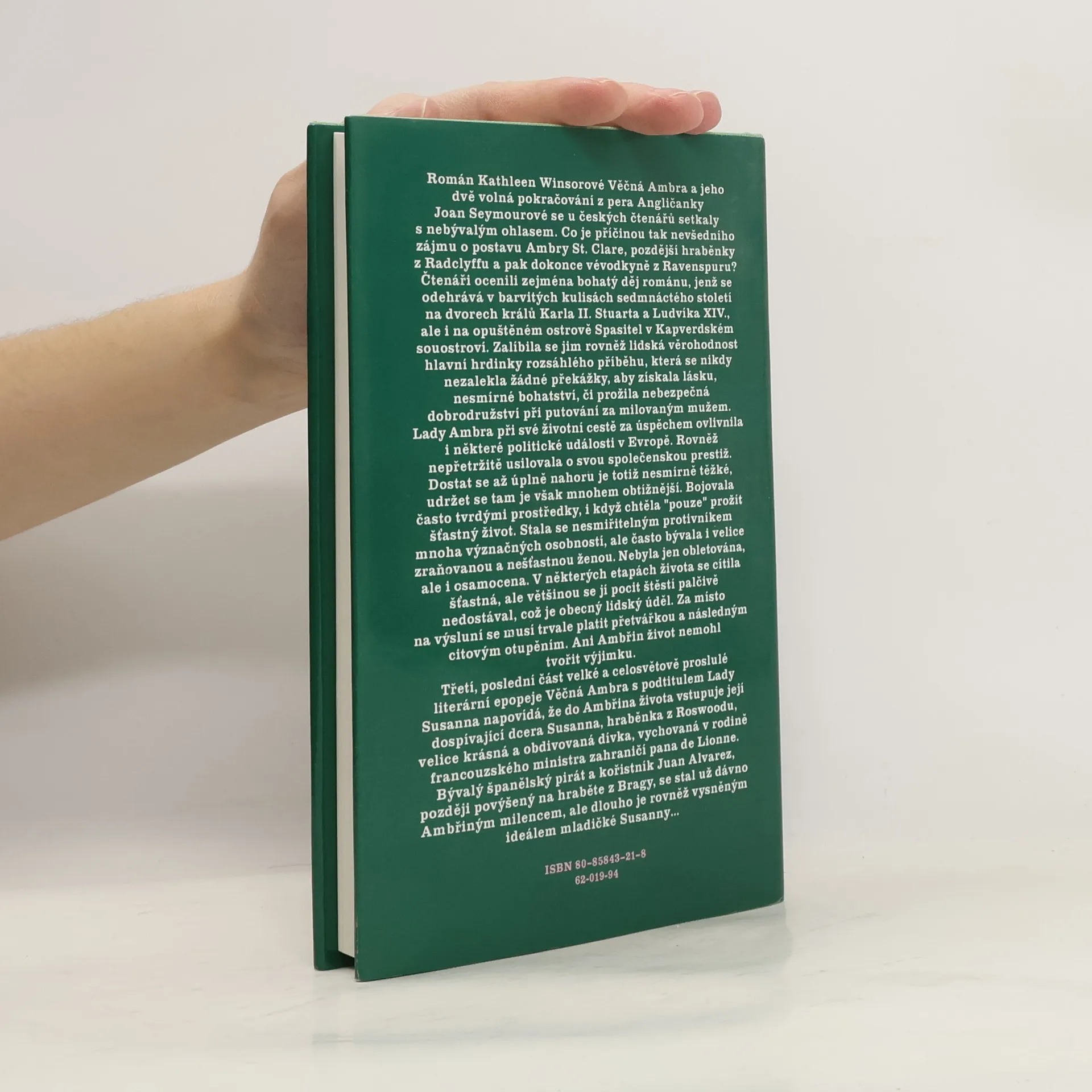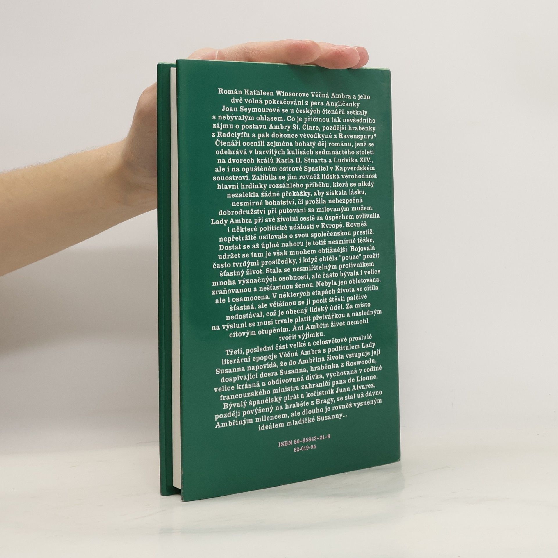 Třetí, závěrečná část románové trilogie Věčná Ambra s podtitulem Lady Susanna, nás opět přivádí do vznešených královských salónů ve Francii a v Anglii 2. poloviny 17. století. Na místa, kde kdysi oslňovala krásou Ambra St. Clare, přichází její dcera Susanna, hraběnka z Roswoodu. Nečeká ji však matčina otevřená náruč, ani přízeň dvorních dam, neboť mladé kouzelné děvče představuje pro každou ženu nežádoucí konkurenci...... celý text