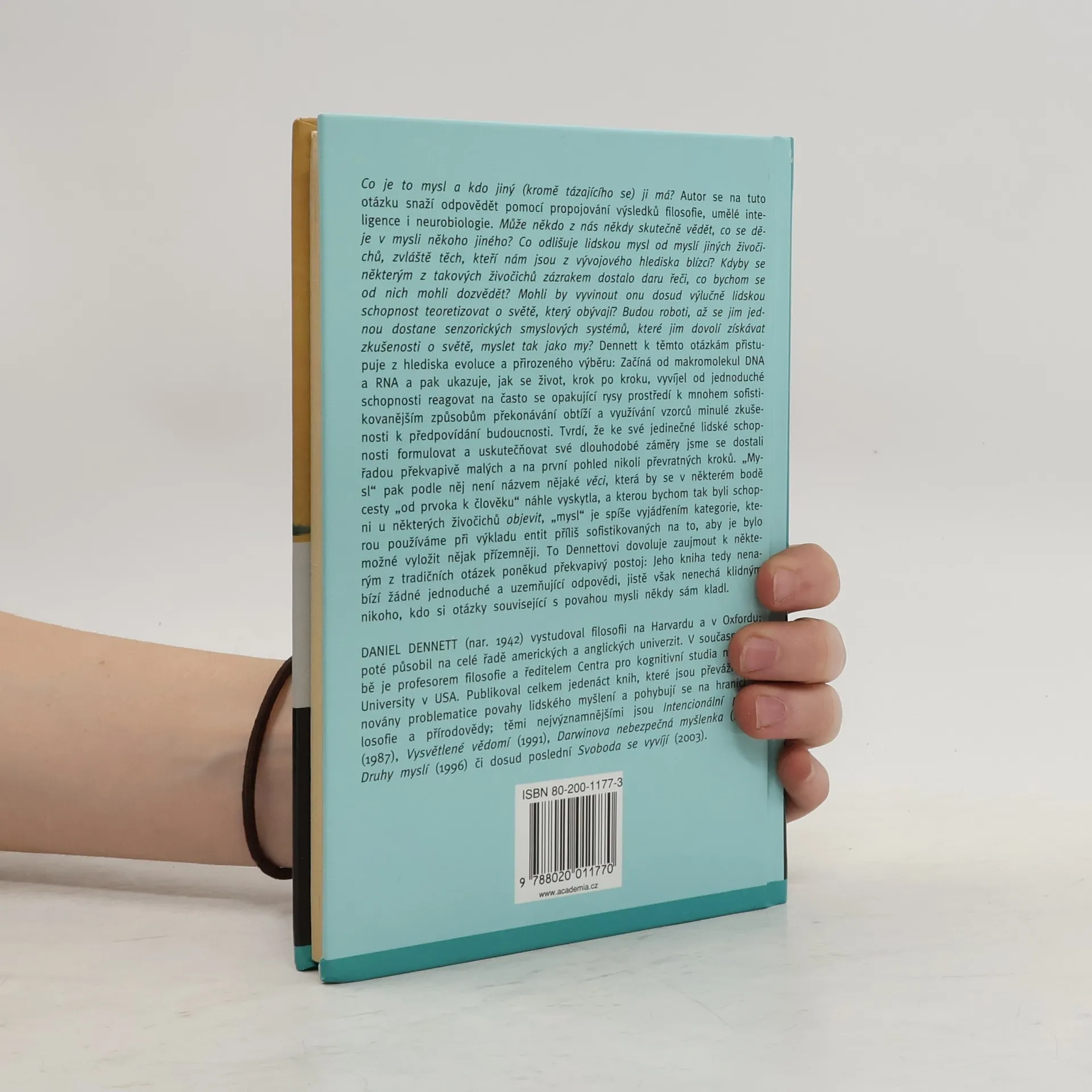 Co je to mysl a kdo jiný (kromě tázajícího se) ji má? Autor se na tuto otázku snaží odpovědět pomocí propojování výsledků filosofie, umělé inteligence i neurobiologie. Může někdo z nás někdy skutečně vědět, co se děje v mysli někoho jiného? Co odlišuje lidskou mysl od myslí jiných živočichů, zvláště těch, kteří nám jsou z vývojového hlediska blízcí? Kdyby se některým z takových živočichů zázrakem dostalo daru řeči, co bychom se od nich mohli dozvědět? Mohli by vyvinout onu dosud výlučně lidskou schopnost teoretizovat o světě, který obývají? Budou roboti, až se jim jednou dostane senzorických smyslových systémů, které jim dovolí získávat zkušenosti o světě, myslet tak jako my? Dennett k těmto otázkám přistupuje z hlediska evoluce a přirozeného výběru: Začíná od makromolekul DNA a RNA a pak ukazuje, jak se život, krok po kroku, vyvíjel od jednoduché schopnosti reagovat na často se opakující rysy prostředí k mnohem sofistikovanějším způsobům překonávání obtíží a využívání vzorců minulé zkušenosti k předpovídání budoucnosti. Tvrdí, že ke své jedinečné lidské schopnosti formulovat a uskutečňovat své dlouhodobé záměry jsme se dostali řadou překvapivě malých a na první pohled nikoli převratných kroků. Dennett zaujímá k některým z tradičních otázek poněkud překvapivý postoj: Jeho kniha nenabízí žádné jednoduché a uzemňující odpovědi, jistě však nenechá klidným nikoho, kdo si otázky související s povahou mysli někdy sám kladl.