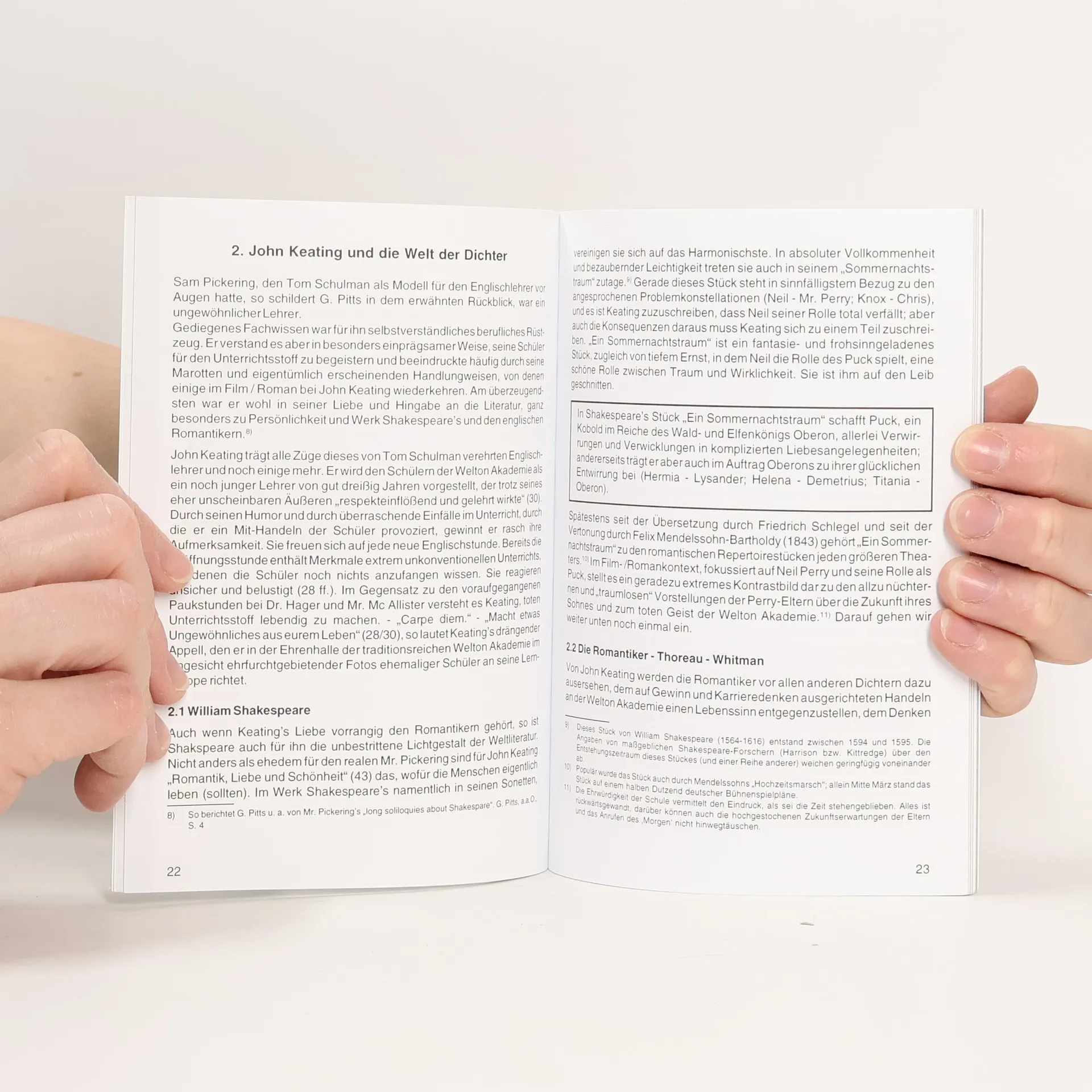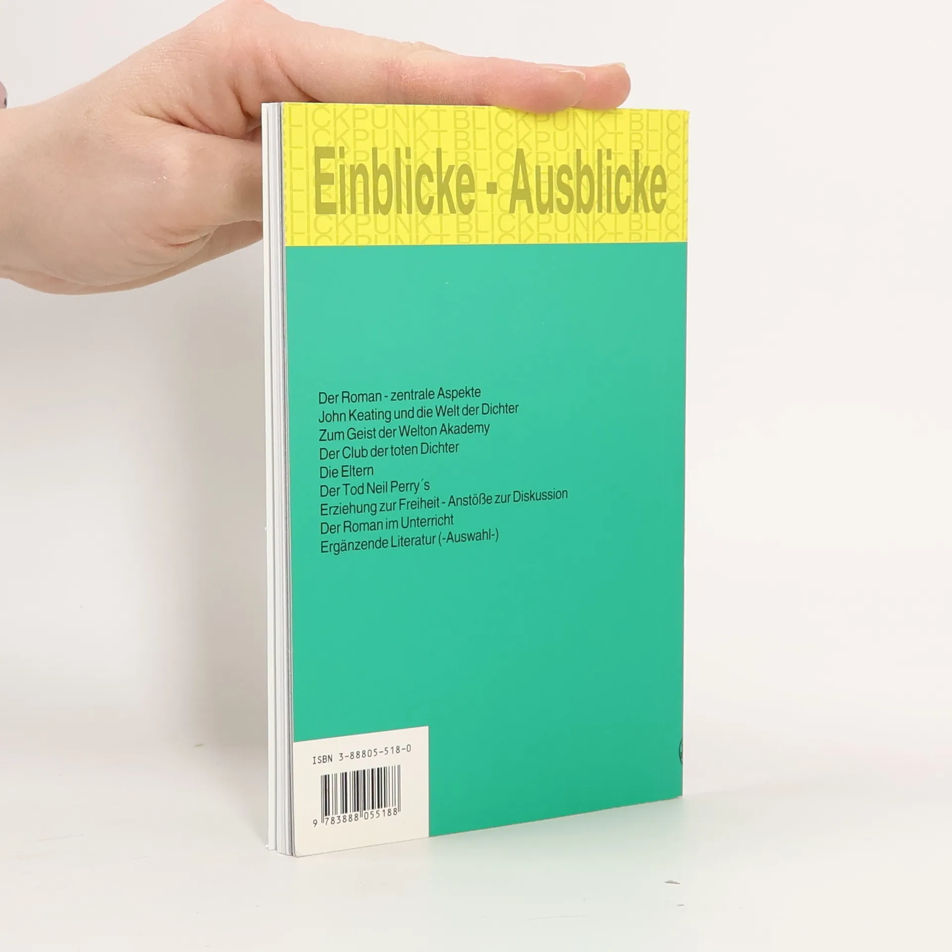 INHALT Vorbemerkung 1. Der Roman - zentrale Aspekte 1.1 Handlungsabriss 1.2 Personen - Konfliktfelder „Aufgabenblock 1“ „Literaturblock 2“ 2. John Keating und die Welt der Dichter 2.1 William Shakespeare 2.2 Die Romantiker - Thoreau - Whitman „Aufgabenblock 2“ „Literaturblock 2“ 3. Zum Geist der Welton Academy 3.1 Das Gesetz 3.2 Die Lehrer „Aufgabenblock 3“ „Literaturblock 3“ 4. Der Club der toten Dichter 4.1 Die Regeln 4.2 Entwicklungen „Aufgabenblock 4“ „Literaturblock 4“ 5. Die Eltern 6. Der Tod Neil Perry's 7. Erziehung zur Freiheit - Anstöße zur Diskussion 8. Der Roman im Unterricht 9. Ergänzende Literatur (Auswahl)