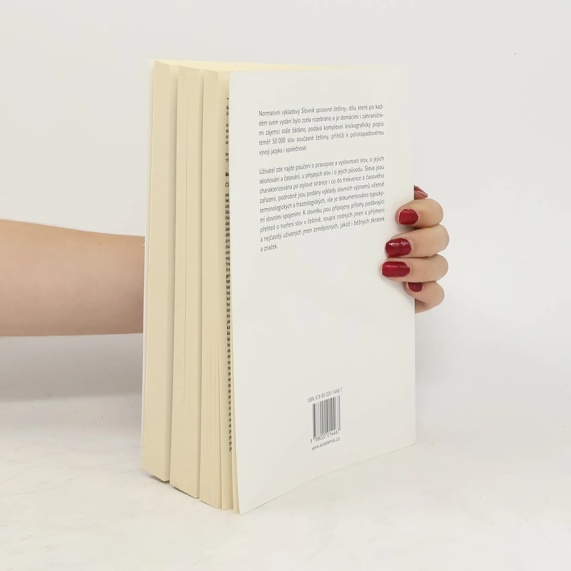 Slovník spisovné češtiny podává komplexní lexikografický popis téměř 50 000 slov současné češtiny, přihlíží k současnému vývoji jazyka i společnosti. Uživatel zde najde poučení o pravopise a výslovnosti slov, o jejich skloňování a časování, u přejatých slov i o jejich původu. Přílohy obsahují přehled o tvoření slov češtině, soupis rodných jmen a příjmení, zeměpisných jmen i běžných zkratek a značek. Pravopis a výslovnost slov, skloňování a časování, výklady slovních významů, synonyma, antonyma, homonyma, přehled tvoření slov v češtině, soupis rodných jmen a příjmení, nejužívanější zeměpisná jména, běžné zkratky a značky.