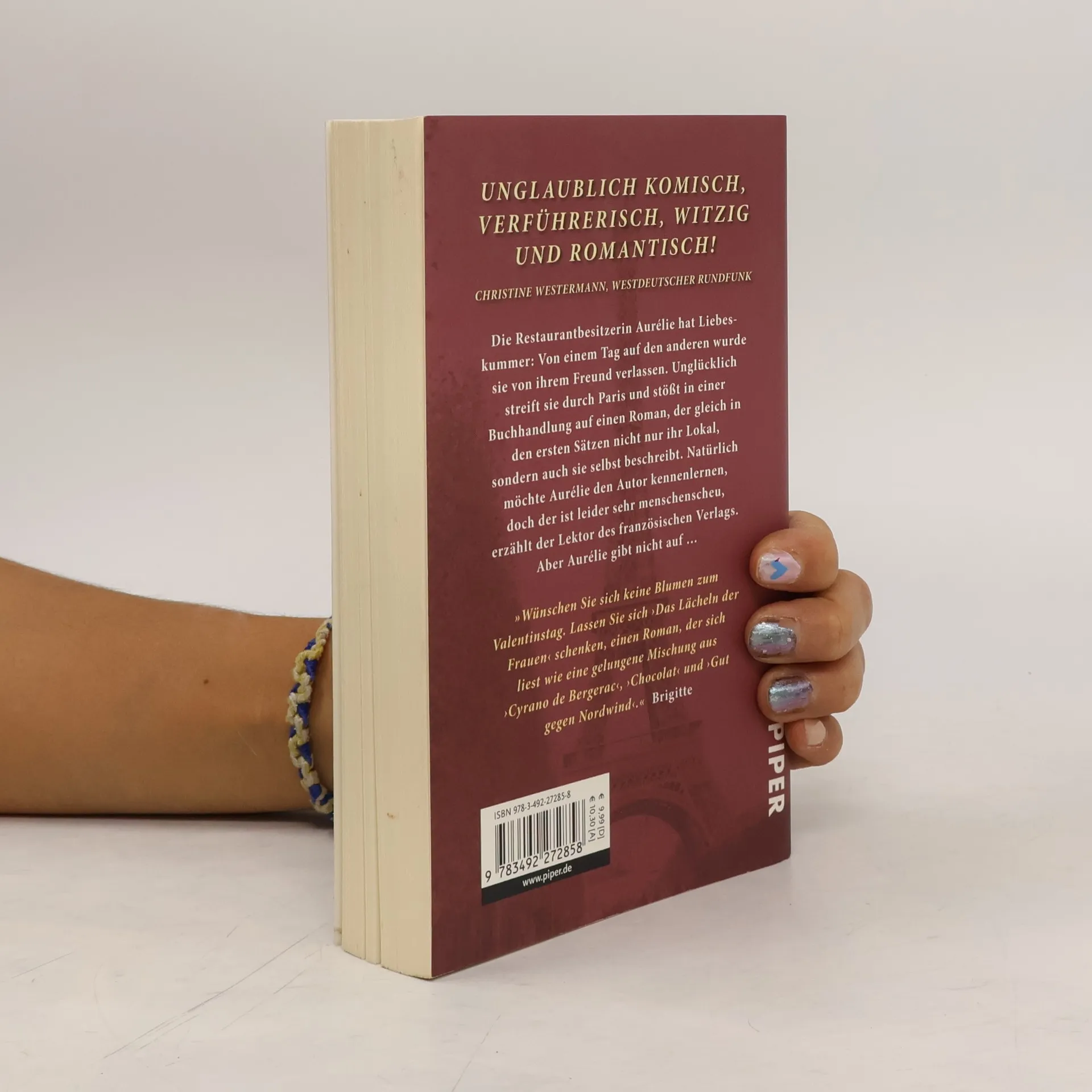 Die junge Restaurantbesitzerin Aurélie hat Liebeskummer: Von einem Tag auf den anderen wurde sie von ihrem Freund verlassen. Unglücklich streift sie durch Paris und stößt in einer kleinen Buchhandlung auf einen Roman, der gleich in den ersten Sätzen nicht nur ihr Lokal, sondern auch sie selbst beschreibt. Begeistert von der Lektüre, möchte Aurélie den Autor des Buchs kennenlernen, doch der ist leider sehr menschenscheu, erfährt sie vom Lektor des französischen Verlags. Aber Aurélie gibt nicht auf …