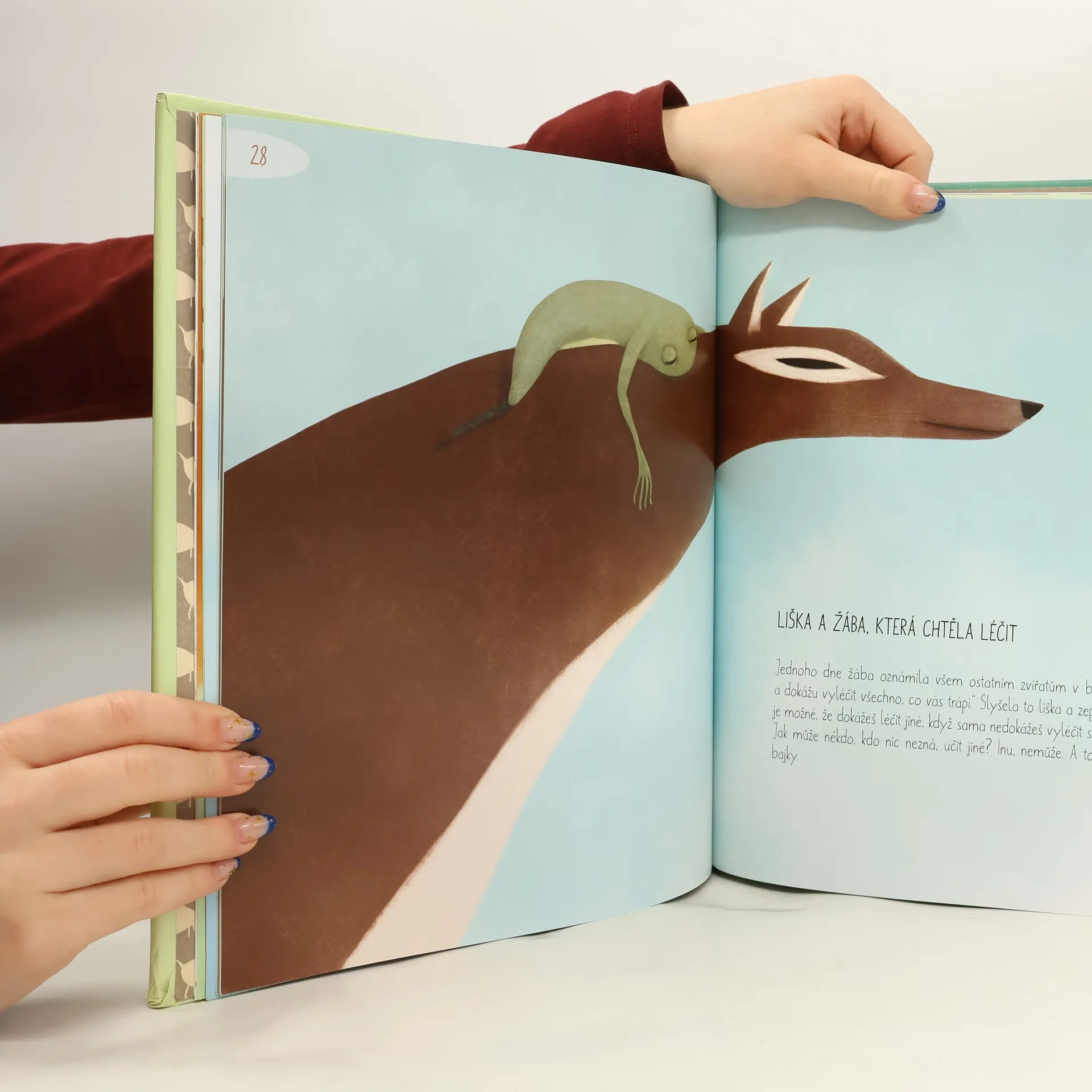 Celostránkové ilustrace doplněně kratičkými bajkami. Určeno mladším dětem.Stručně a výstižně podané nadčasové příběhy o nelichotivých lidských vlastnostech, zvycích a chování. Tyto vlastnosti nesou na svých bedrech zvířata, která v bajkách vystupují místo lidí. Součástí bajek jsou i ponaučení.