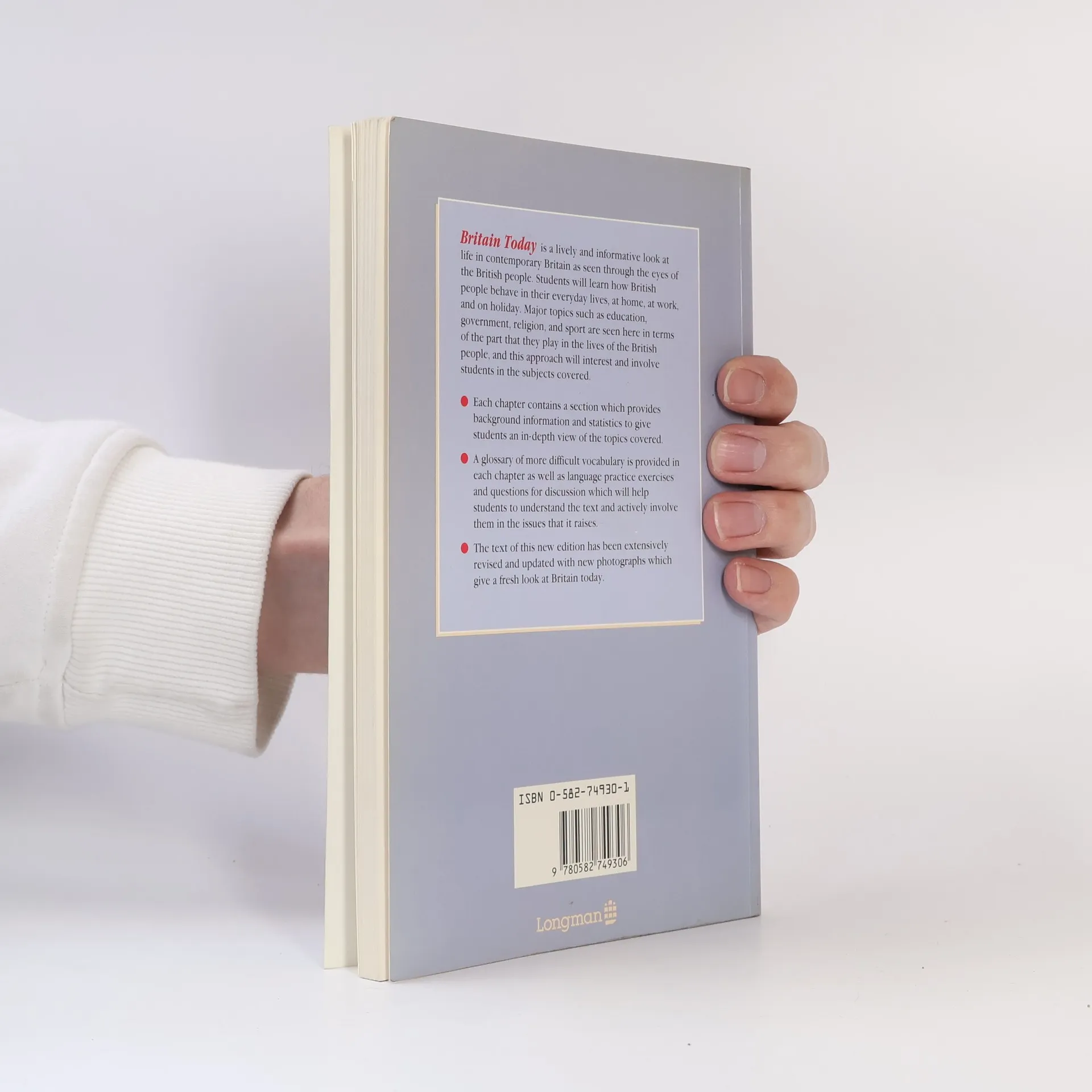 This is revised and updated look at life in contemporary Britain seen through the eyes of the British people. Major topics such as education, government, religion and sport are shown in context of the lives of British people who are seen at home, at work and at leisure.