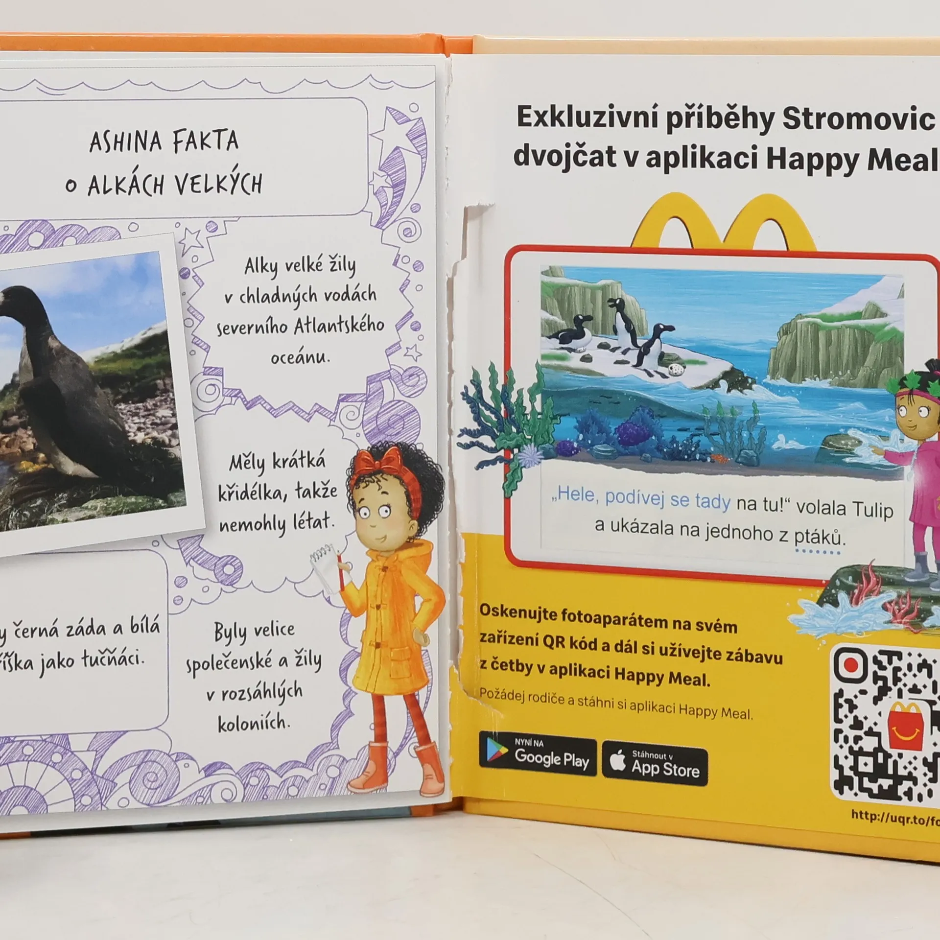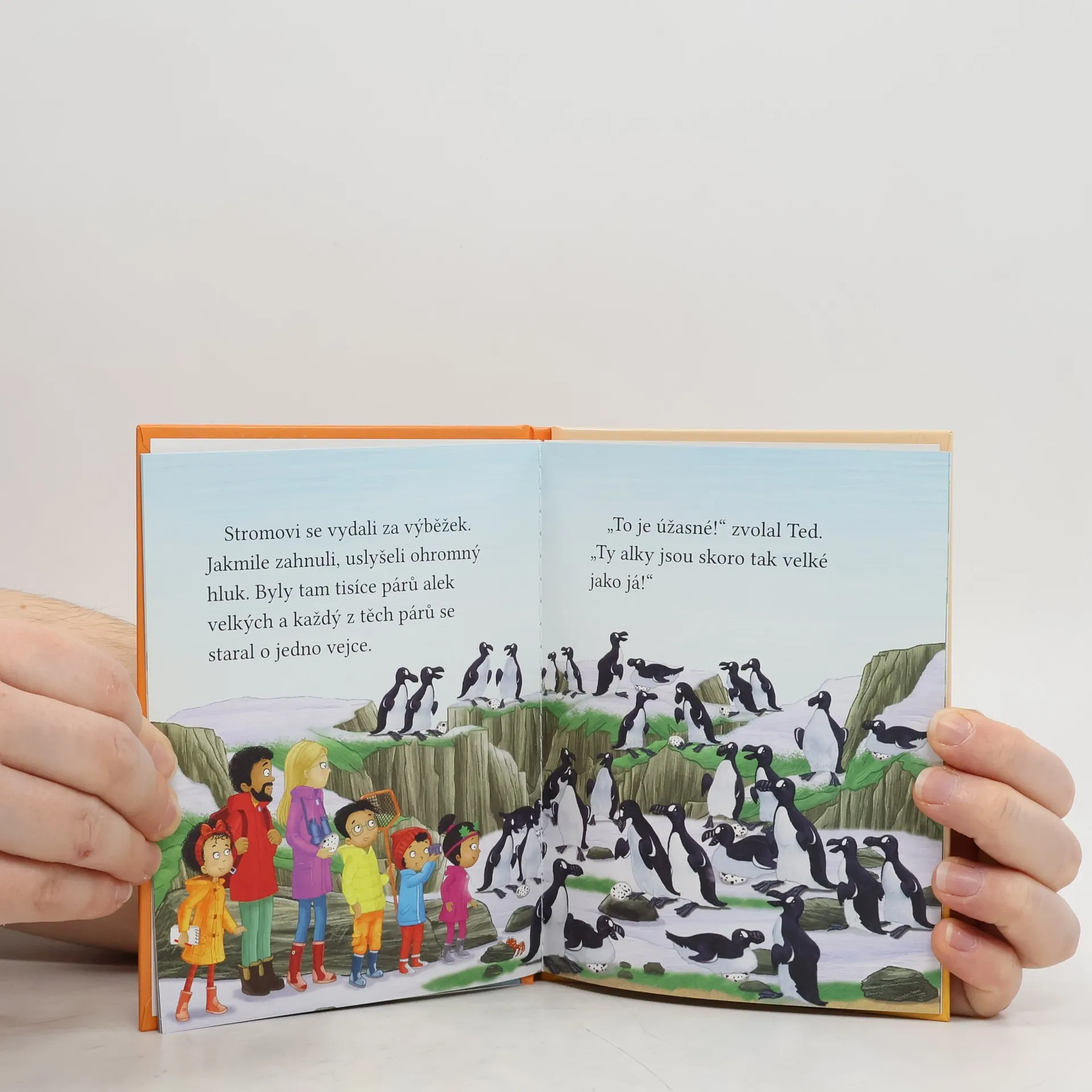 Stromovic dvojčata a jejich dobrodružství v divočině. Dvojčata se zdraví s alkou velkou, Cressida Cowell
