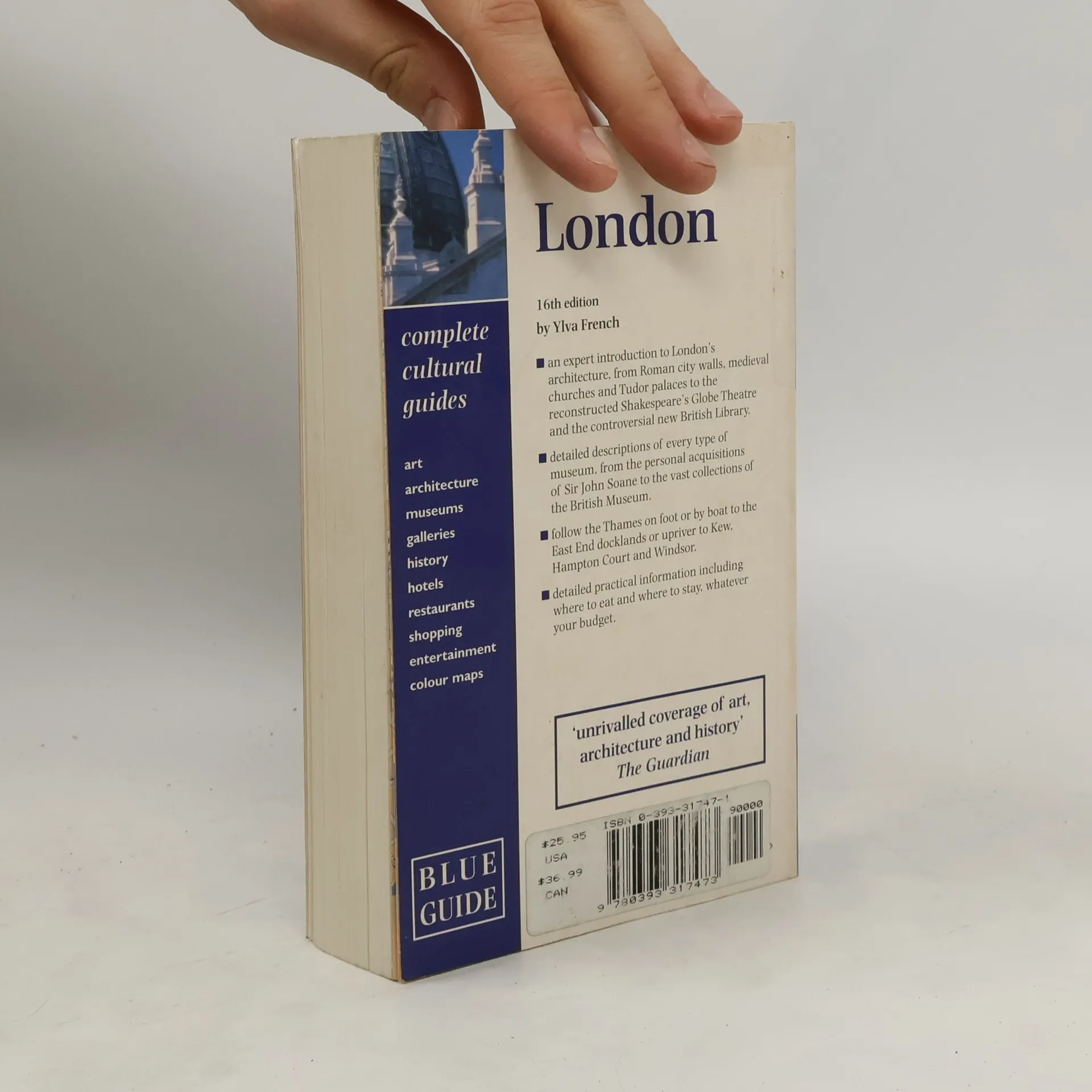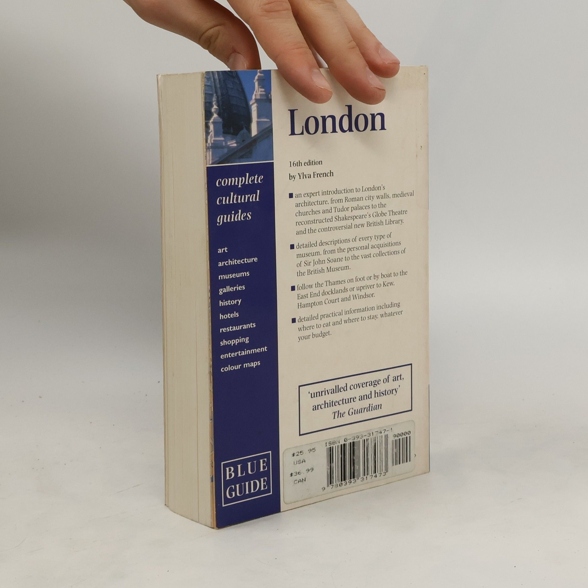 One of the most popular BLUE GUIDES, this new edition provides a street-by-street description of central London, as well as detailed coverage of Outer London, from Edmonton in the north to Croydon in the south, from Woolwich in the east to Windsor in the west. This comprehensive guide focuses on the history of London and its art, architecture, museums, and galleries. 14 maps and plans. 30-page color atlas. 25 illustrations.