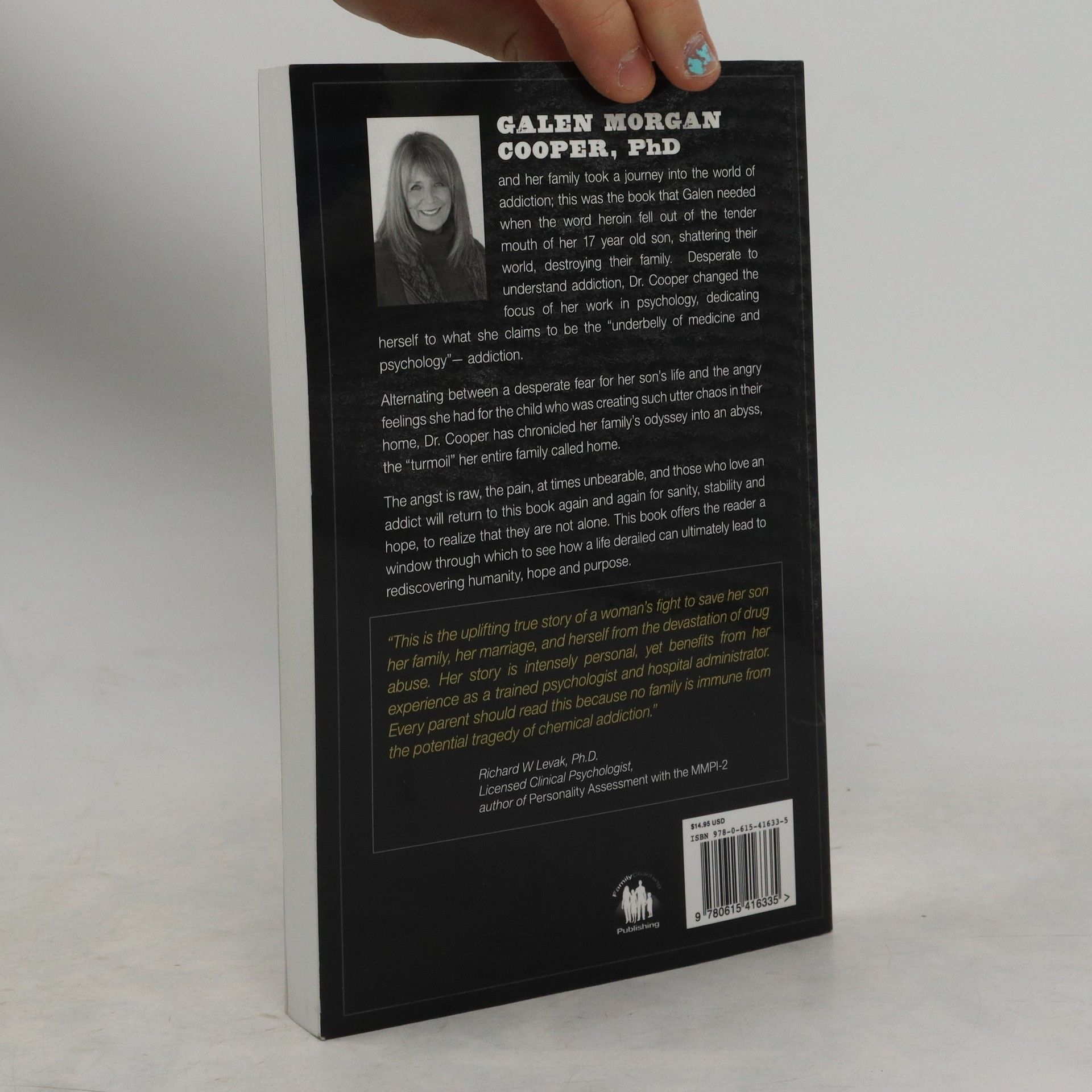 Galen Morgan Cooper, PhD and her family took a journey into the world of addiction, this was the book that Galen needed when the word heroin fell out of the tender mouth of her 17 year old son, shattering their world, destroying their family. Desperate to understand addiction, Dr. Cooper changed the focus of her work in psychology, dedicating herself to what she claims to be the underbelly of medicine and psychology - addiction. Alternating between a desperate fear for her son's life and the angry feelings she had for the child who was creating such utter chaos in their home, Dr. Cooper has chronicled her family's odyssey into an abyss, the turmoil her entire family called home. The angst is raw, the pain unbearable, and those who love an addict will return to this book again and again for sanity, stability and hope, to realize that they are not alone. This book offers the reader a window through which to see how a life derailed can ultimately lead to rediscovering humanity, hope and purpose.