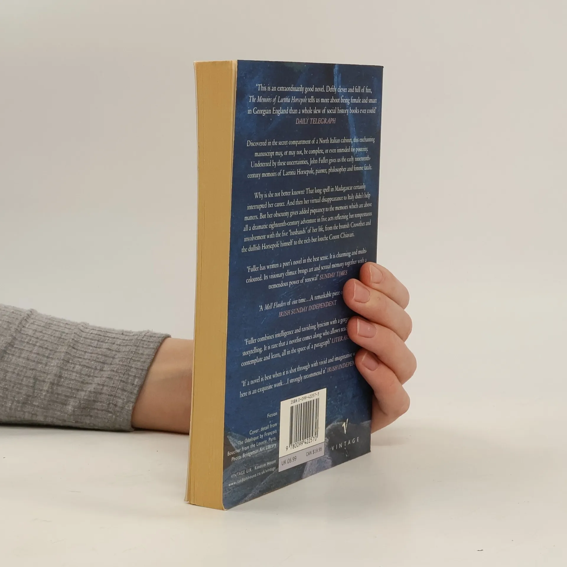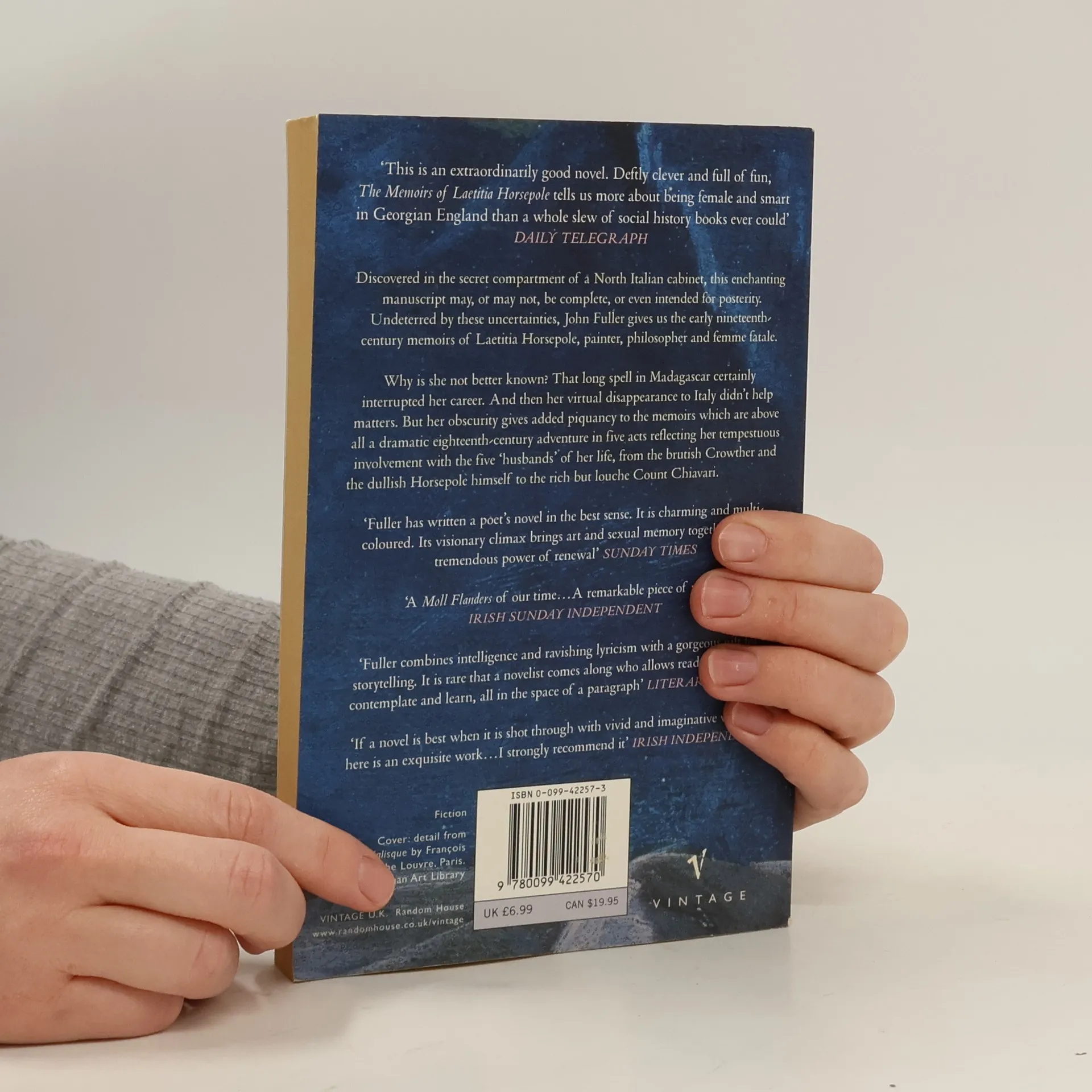 But her obscurity gives added piquancy to the memoirs which - her idiosyncratic art theory and philosophy apart - are above all a dramatic eighteenth-century adventure in five acts which reflect her tempestuous involvement with the five 'husbands' of her life, from the brutish Crowther and the dull and the rich but louche Count Chiavari.