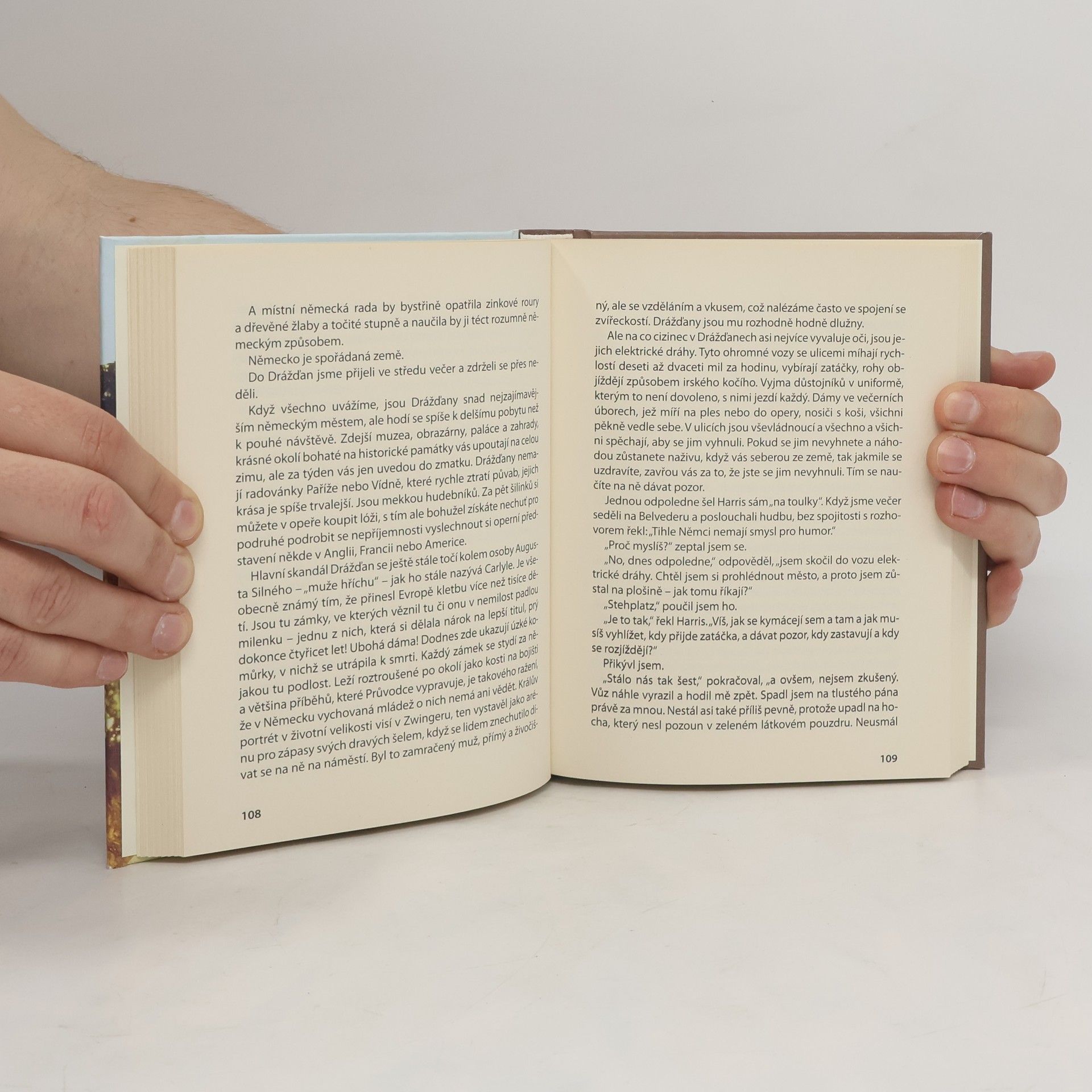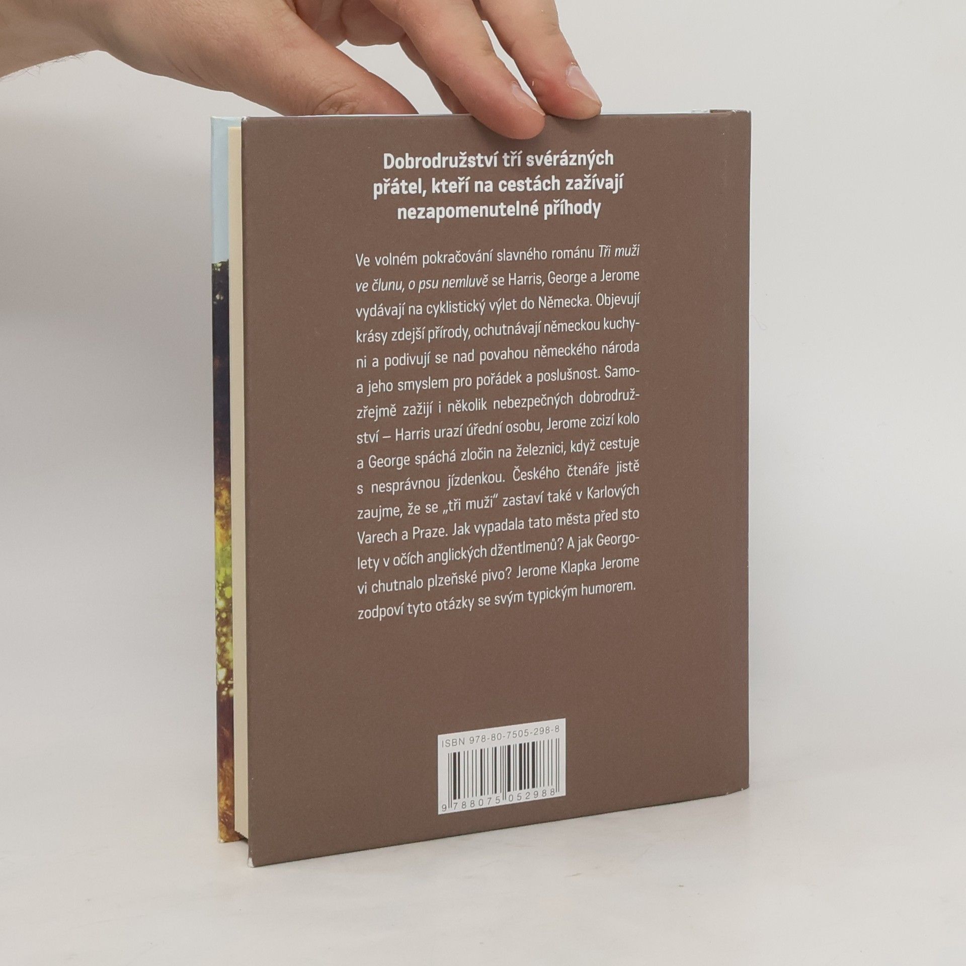 Humoristický román anglického autora je volným pokračováním jeho světoznámých Tří mužů ve člunu. Tentokrát autor doprovází trojici nerozlučných přátel na jejich cyklistických cestách po Německu a jeho pamětihodnostech. Jejich dobrodružství, žerty a vzájemné popichování potěší všechny vyznavače klasického humoru.