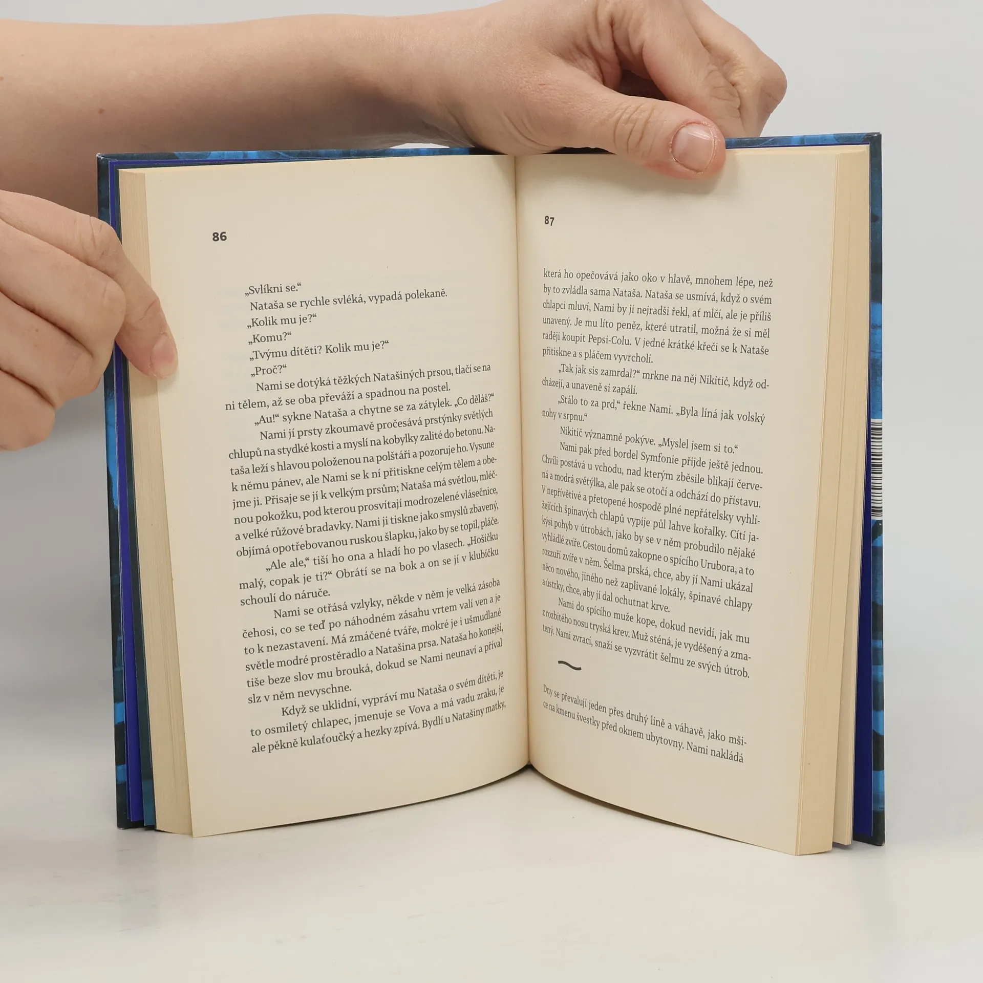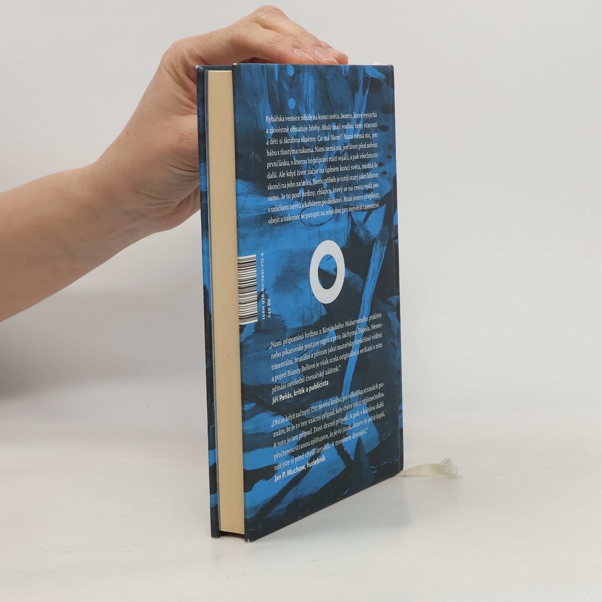 Příběh ze současnosti starý jako lidstvo samo. Rybářská vesnice někde na konci světa, u jezera, které vysychá a zlověstně vyhrnuje břehy. Muži mají vodku, ženy starosti a děti si škrábou ekzémy. Co má Nami? Nami nemá nic — jen bábu s tlustýma rukama. Nami nemá nic, jen život před sebou: první lásku, o kterou ho připraví ruští vojáci, a pak to všechno další. Raději na to nemyslet. Ale když život začne na úplném konci světa, možná že skončí na jeho začátku. Tenhle příběh je totiž starý jako lidstvo samo. Je to pouť hrdiny, chlapce, který na cestu vyráží jen s uzlíčkem nervů a kabátem po dědkovi. Musí do světa, aby hledal, a vrátit se domů, aby našel. Musí jezero přeplout, obkroužit a nakonec se potopit na jeho dno pro největší tajemství. Bianca Bellová napsala brilantní novelu, která se podobá i nepodobá jejím předchozím knihám. Zůstává syrovost vidění, přesný a úsečný jazyk. Ale tentokrát se ocitáme v úplně jiném světě, hutnějším, hlubším, osudovějším. Teprve zde jako by do sebe vše zapadlo. Jezero svými ledovými vodami svírá útroby.