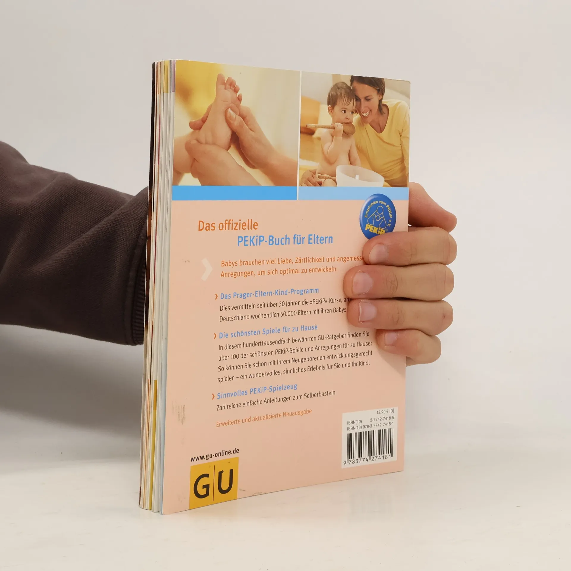 Mit PEKiP, dem ? Prager-Eltern-Kind-Programm?, können Eltern die Entwicklung ihres Babys optimal unterstützen. Der 100.000-fach bewährte GU-Ratgeber zu diesem Thema liegt nun in einer erweiterten Neuauflage vor. Übersichtlich und kompakt er-fahren Eltern zunächst alles Wichtige zur Entwicklung ihres Kindes im ersten Jahr. Mit den jetzt über 100 Spielen und Be-wegungsanregungen, praktisch nach Altersgruppen geordnet, können Eltern mit ihrem Baby zu Hause eine wunderschöne, gemeinsame Spielzeit genießen und gleichzeitig seine Fähigkeiten gezielt fördern. Zahlreiche Anleitungen für sinnvolles Spielzeug zum Selberbasteln runden das Buch ab.Extra: Poster mit den schönsten PEKiP-Spielen