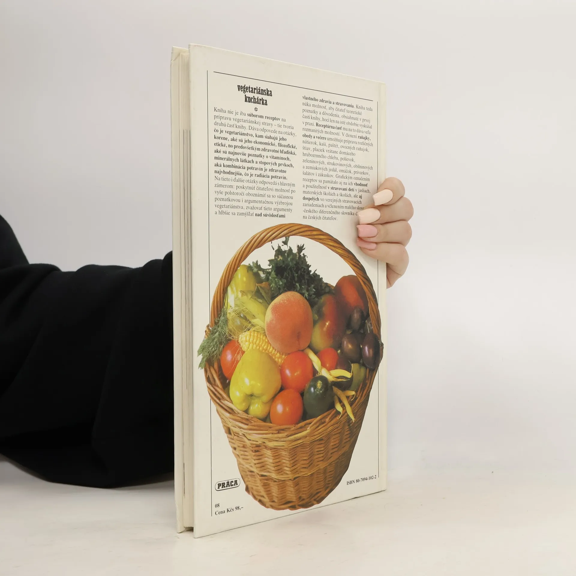 300 receptů, vegetariánství v teorii a v praxi. Kniha není jen souborem receptů na přípravu vegetariánské stravy - ty tvoří druhou část knihy. Dává také odpovědi na otázky co je vegetariánství, kam sahají jeho kořeny, jaká jsou jeho ekonomická, filozofická, etická, ale především zdravotní hlediska, jaké jsou nejnovější poznatky o vitamínech, minerálních látkách a stopových prvcích, jaká kombinace potravin je zdravotně nejvhodnější, co je radiace potravin. Na tyto a další otázky odpovídá s hlavním záměrem: poskytnout čtenáři možnost seznámit se po víc než půlstoletí se současnou poznatkovou a argumentační výzbrojí vegetariánství, zvažovat tyto argumenty a hlouběji se zamýšlet nad souvislostmi mezi vlastním zdravím a stravováním. Kniha tedy nabízí čtenáři možnost vyzkoušet v praxi, třeba jen na určité období, teoretické poznatky a odůvodnění, jež jsou první části knihy. Recepturní část mu k tomu poskytuje mnoho rozmanitých možností. Členění na snídaně, obědy a večeře umožňuje uvést recepty na přípravu různých pomazánek, kaší, paštik, ovocných snídaní, šťáv, placek, také domácího celozrnného chleba, polévek, zeleninových, luštěninových, obilovinových a bramborových jídel, omáček, zadělávaných pokrmů, salátů a zákusků. Grafickým označením receptů se pamatovalo i na vyjádření jejich vhodnosti a použitelnosti v stravování dětí v jeslích, mateřských školách, ale i dospělých ve veřejných stravovacích zařízeních.