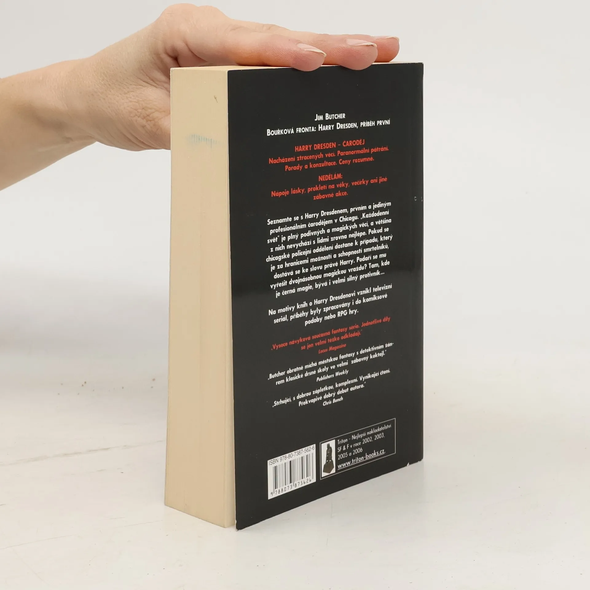Harry Dresden je v tom, co dělá, ten nejlepší. No, technicky vzato, je to ten jediný, kdo to dělá. Takže když má Chicagské policejní oddělení nějaký případ, který je za hranicemi možností nebo tvůrčích schopností smrtelníků, přijdou si k němu policisté pro odpovědi. „Každodenní“ svět je totiž vážně plný podivných a magických věcí - a většina z nich s lidmi nevychází zrovna nejlíp. Pak nastupuje Harry. K tomu, abyste chytili - no, to je jedno - potřebujete čaroděje. O sérii: Bývalý soukromý detektiv Harry Dresden se dnes živí v prostředí současného Chicaga jako čaroděj. Mezi jeho časté zakázky patří hledání ztracených předmětů, různé druhy paranormálního vyšetřování, konzultační a poradenská práce, to vše za rozumnou cenu. Občas se mu soukromá praxe příliš nevyplácí, ale nakonec se vždy objeví nějaký ten problém s duchy, upíry či jinými projevy nespokojeného nadpřirozena. Série je napsána odlehčeným, mnohdy akčním stylem a díky tomu si rychle našla vzrůstající počet příznivců. Klasické schéma americké detektivky drsné školy (kde detektiv zpustlého zevnějšku oplývá černým humorem, je věčně bez peněz a každou chvíli dostane přes hubu) se Butcherovi podařilo dovedně zkombinovat s atributy městské fantasy.
